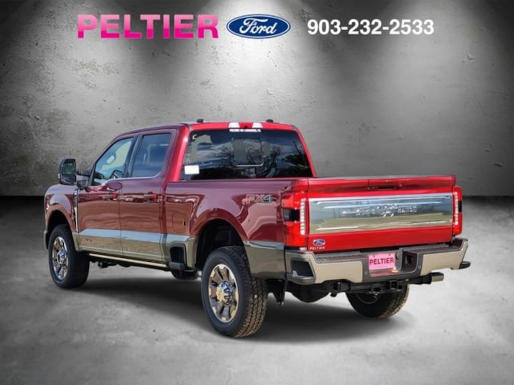 F-250 >10K GVWR Package, Ford Connectivity Package (1-Year Included), FX4 Off-Road Package (Hill Descent Control, Off-Road Specifically Tuned Shock Absorbers, and Unique FX4 Off-Road Box Decal), Internet access capable: 5G Modem - Ford Connectivity Package, 4WD, 14 Speakers, 4-Wheel Disc Brakes, 410 Amp Dual Alternators, ABS brakes, Adjustable pedals, Air Conditioning, Alloy wheels, AM/FM radio: SiriusXM with 360L, Auto High-beam Headlights, Auto tilt-away steering wheel, Auto-dimming Rear-View mirror, Automatic temperature control, Brake assist, Compass, Delay-off headlights, Driver door bin, Driver vanity mirror, Dual front impact airbags, Dual front side impact airbags, Electronic Stability Control, Emergency communication system: SYNC 4 911 Assist, Engine Block Heater, Flow-Through Console, Front anti-roll bar, Front Bucket Seats, Front Center Armrest, Front dual zone A/C, Front fog lights, Front reading lights, Fully automatic headlights, Garage door transmitter, Heads-Up Display, Heated door mirrors, Heated front seats, Heated rear seats, Heated steering wheel, Illuminated entry, Leather steering wheel, Low tire pressure warning, Memory seat, Navigation system: Connected Navigation, Outside temperature display, Overhead airbag, Overhead console, Panic alarm, Passenger door bin, Passenger vanity mirror, Pedal memory, Power door mirrors, Power driver seat, Power passenger seat, Power steering, Power windows, Pro Power Onboard - 2kW, Radio: B&O Unleashed Sound System by Bang & Olufsen, Rain sensing wipers, Rear reading lights, Rear seat center armrest, Rear step bumper, Rear window defroster, Remote keyless entry, SecuriCode Keyless Entry Keypad (Driver's Side), Security system, SiriusXM w/360L, Speed control, Split folding rear seat, Steering wheel memory, Steering wheel mounted A/C controls, Steering wheel mounted audio controls, SYNC 4 w/Enhanced Voice Recognition, Tachometer, Telescoping steering wheel, Tilt steering wheel, Traction control, Trip computer, Turn signal indicator mirrors, Twin Panel Power Moonroof, Unique King Ranch Leather 40/Console/40 Seats, Upfitter Switches (6), Variably intermittent wipers, Ventilated front seats, and Wheels: 20" Bright Machined Aluminum.