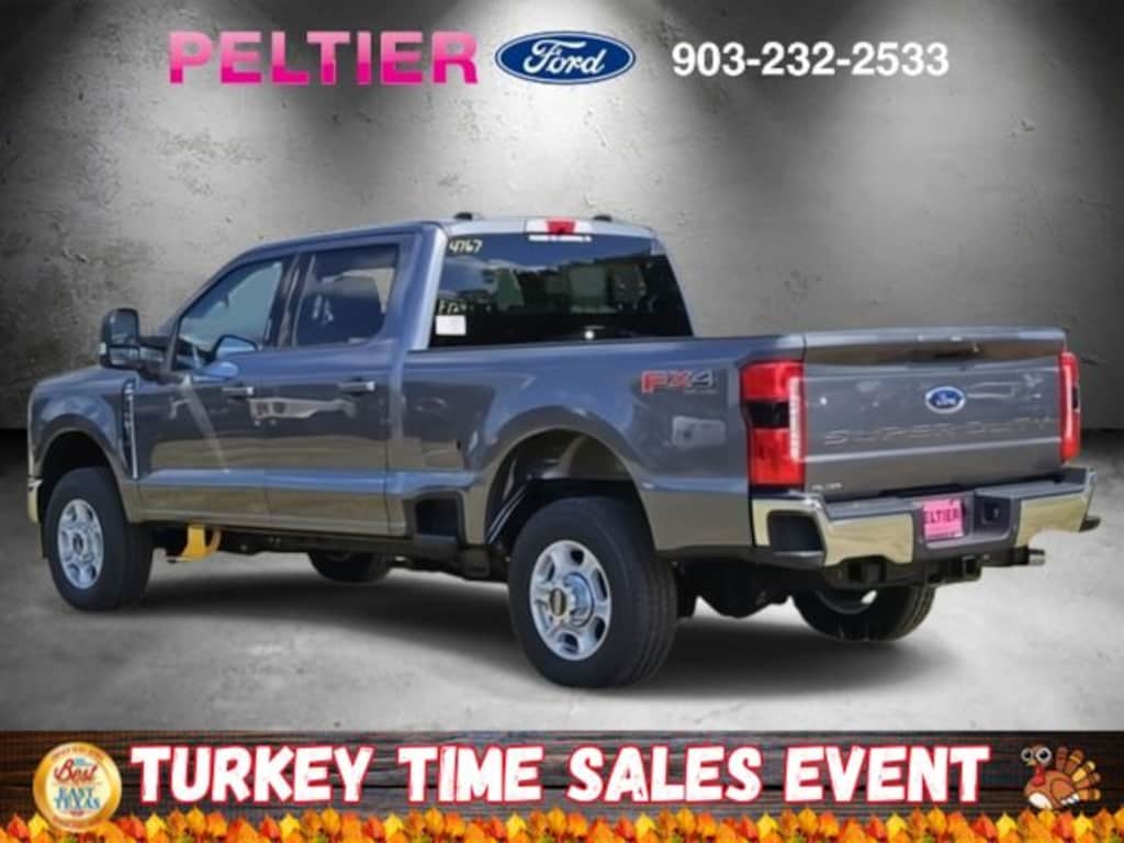 360-Degree Camera Package (360-Degree Camera, BLIS w/Cross-Traffic Alert, LED Center High-Mounted Stop Lamp (CHMSL) Camera, and Rear Parking Sensors), F-250 >10K GVWR Package, Ford Connectivity Package (1-Year Included), FX4 Off-Road Package (Hill Descent Control, Off-Road Specifically Tuned Shock Absorbers, and Unique FX4 Off-Road Box Decal), GVWR: 10,000 lb Payload Package, Internet access capable: 5G Modem - Ford Connectivity Package, Order Code 603A, XLT Premium Package (Automatic High Beam, Body-Color Door Handles, Bright Chrome Grille w/Chrome Inserts, Electrochromic Self-Dimming Rear-View Mirror, Heated Front Seats, Intelligent Access w/Push-Button Start, LED Box Lighting, LED Fog Lamps, PowerScope Trailer Tow Mirrors w/Heat, Radio: B&O Sound System by Bang & Olufsen, Remote Start System, Remote Tailgate Release, SiriusXM w/360L, SiriusXM w/360L (3-Year Plan), and SYNC 4 w/Enhanced Voice Recognition), 4WD, 250 Amp Alternator (Gas), 4-Wheel Disc Brakes, 6 Speakers, ABS brakes, Air Conditioning, Alloy wheels, AM/FM radio, AM/FM Stereo w/MP3 Player, Auto High-beam Headlights, Brake assist, Bumpers: chrome, Cloth 40/20/40 Split Bench Seat, Compass, Delay-off headlights, Driver door bin, Driver vanity mirror, Dual front impact airbags, Dual front side impact airbags, Electronic Stability Control, Emergency communication system: SYNC 4 911 Assist, Exterior Parking Camera Rear, Front anti-roll bar, Front Center Armrest w/Storage, Front fog lights, Front License Plate Bracket, Front reading lights, Fully automatic headlights, Heated door mirrors, Illuminated entry, Low tire pressure warning, Outside temperature display, Overhead airbag, Overhead console, Panic alarm, Passenger door bin, Passenger vanity mirror, Power door mirrors, Power driver seat, Power steering, Power windows, Privacy Glass, Rear reading lights, Rear step bumper, Remote keyless entry, SecuriCode Keyless Entry Keypad (Driver's Side), Security system, Speed control, Split folding rear seat, Steering wheel mounted audio controls, SYNC 4, Tachometer, Telescoping steering wheel, Tilt steering wheel, Traction control, Trip computer, Turn signal indicator mirrors, Upfitter Switches (6), Variably intermittent wipers, and Wheels: 18" Sparkle Silver Painted Cast Aluminum.