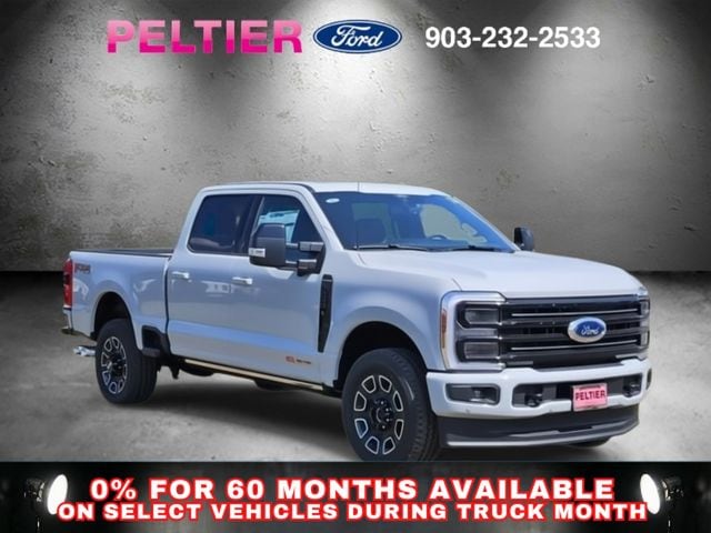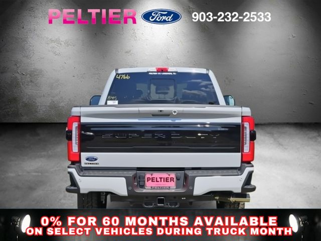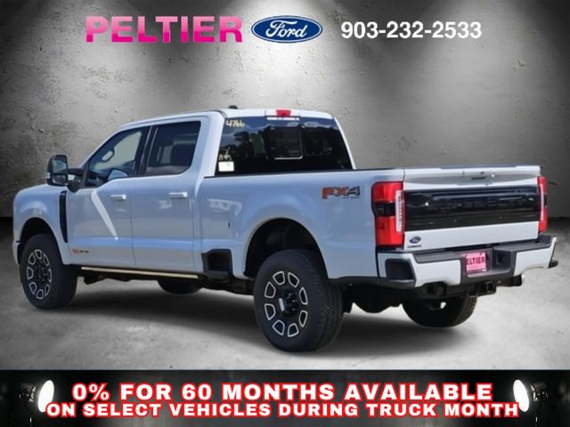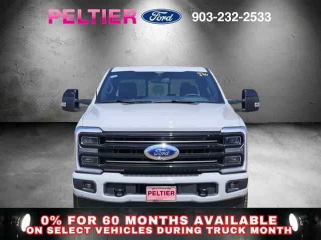 Ford Connectivity Package (1-Year Included), FX4 Off-Road Package (Hill Descent Control, Off-Road Specifically Tuned Shock Absorbers, and Unique FX4 Off-Road Box Decal), GVWR: F-250 >10K Package, High Capacity 11.6" Axle Upgrade Package, Internet access capable: 5G Modem - Ford Connectivity Package, Order Code 703A (Flow-Through Console, Radio: B&O Unleashed Sound System by Bang & Olufsen, SiriusXM with 360L, SYNC 4 with Enhanced Voice Recognition, Unique Platinum Leather 40/Console/40 Seats, and Wheels: 20" Bright Machined and Painted Aluminum), 4WD, 14 Speakers, 4-Wheel Disc Brakes, 410 Amp Dual Alternators, ABS brakes, Adjustable pedals, Air Conditioning, Alloy wheels, AM/FM radio: SiriusXM with 360L, Auto High-beam Headlights, Auto tilt-away steering wheel, Auto-dimming Rear-View mirror, Automatic temperature control, Brake assist, Bumpers: body-color, Compass, Delay-off headlights, Driver door bin, Driver vanity mirror, Dual front impact airbags, Dual front side impact airbags, Electronic Stability Control, Emergency communication system: SYNC 4 911 Assist, Engine Block Heater, Front anti-roll bar, Front Bucket Seats, Front Center Armrest, Front dual zone A/C, Front fog lights, Front License Plate Bracket, Front reading lights, Fully automatic headlights, Garage door transmitter, Heads-Up Display, Heated door mirrors, Heated front seats, Heated rear seats, Heated steering wheel, Illuminated entry, Leather steering wheel, Low tire pressure warning, Memory seat, Navigation system: Connected Navigation, Outside temperature display, Overhead airbag, Overhead console, Panic alarm, Passenger door bin, Passenger vanity mirror, Pedal memory, Power door mirrors, Power driver seat, Power passenger seat, Power steering, Power windows, Pro Power Onboard - 2kW, Rain sensing wipers, Rear reading lights, Rear seat center armrest, Rear step bumper, Rear window defroster, Remote keyless entry, SecuriCode Keyless Entry Keypad (driver's Side), Security system, Speed control, Split folding rear seat, Steering wheel memory, Steering wheel mounted A/C controls, Steering wheel mounted audio controls, Tachometer, Telescoping steering wheel, Tilt steering wheel, Traction control, Trip computer, Turn signal indicator mirrors, Twin Panel Power Moonroof, Upfitter Switches (6), Variably intermittent wipers, and Ventilated front seats.