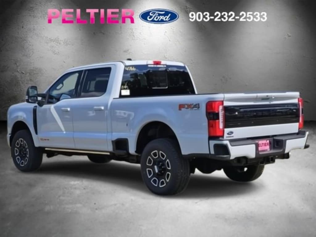 F-250 >10K GVWR Package, Ford Connectivity Package (1-Year Included), FX4 Off-Road Package (Hill Descent Control, Off-Road Specifically Tuned Shock Absorbers, and Unique FX4 Off-Road Box Decal), High Capacity 11.6" Axle Upgrade Package, Internet access capable: 5G Modem - Ford Connectivity Package, Order Code 703A, 4WD, 14 Speakers, 4-Wheel Disc Brakes, 410 Amp Dual Alternators, ABS brakes, Adjustable pedals, Air Conditioning, Alloy wheels, AM/FM radio: SiriusXM with 360L, Auto High-beam Headlights, Auto tilt-away steering wheel, Auto-dimming Rear-View mirror, Automatic temperature control, Brake assist, Bumpers: body-color, Compass, Delay-off headlights, Driver door bin, Driver vanity mirror, Dual front impact airbags, Dual front side impact airbags, Electronic Stability Control, Emergency communication system: SYNC 4 911 Assist, Engine Block Heater, Flow-Through Console, Front anti-roll bar, Front Bucket Seats, Front Center Armrest, Front dual zone A/C, Front fog lights, Front License Plate Bracket, Front reading lights, Fully automatic headlights, Garage door transmitter, Heads-Up Display, Heated door mirrors, Heated front seats, Heated rear seats, Heated steering wheel, Illuminated entry, Leather steering wheel, Low tire pressure warning, Memory seat, Navigation system: Connected Navigation, Outside temperature display, Overhead airbag, Overhead console, Panic alarm, Passenger door bin, Passenger vanity mirror, Pedal memory, Power door mirrors, Power driver seat, Power passenger seat, Power steering, Power windows, Pro Power Onboard - 2kW, Radio: B&O Unleashed Sound System by Bang & Olufsen, Rain sensing wipers, Rear reading lights, Rear seat center armrest, Rear step bumper, Rear window defroster, Remote keyless entry, SecuriCode Keyless Entry Keypad (Driver's Side), Security system, SiriusXM w/360L, Speed control, Split folding rear seat, Steering wheel memory, Steering wheel mounted A/C controls, Steering wheel mounted audio controls, SYNC 4 w/Enhanced Voice Recognition, Tachometer, Telescoping steering wheel, Tilt steering wheel, Traction control, Trip computer, Turn signal indicator mirrors, Twin Panel Power Moonroof, Unique Platinum Leather 40/Console/40 Seats, Upfitter Switches (6), Variably intermittent wipers, Ventilated front seats, and Wheels: 20" Bright Machined & Painted Aluminum.