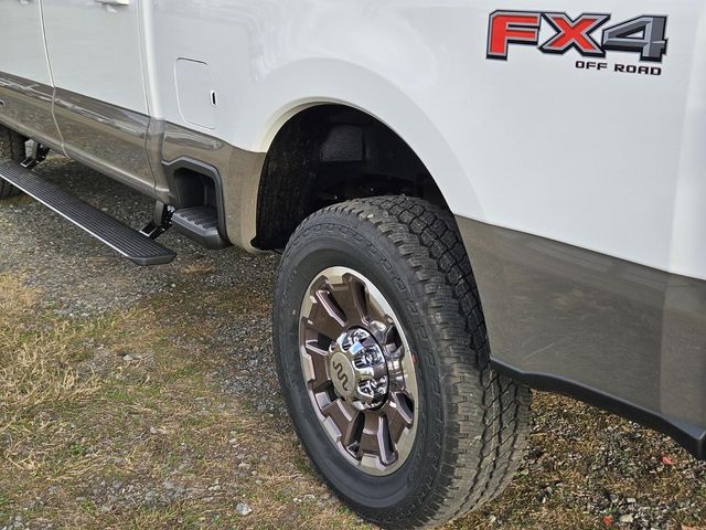 Ford Connectivity Package (1-Year Included), FX4 Off-Road Package (Hill Descent Control, Off-Road Specifically Tuned Shock Absorbers, and Unique FX4 Off-Road Box Decal), GVWR: F-250 >10K Package, Internet access capable: 5G Modem - Ford Connectivity Package, 4WD, 14 Speakers, 4-Wheel Disc Brakes, 410 Amp Dual Alternators, ABS brakes, Adjustable pedals, Air Conditioning, Alloy wheels, AM/FM radio: SiriusXM with 360L, Auto High-beam Headlights, Auto tilt-away steering wheel, Auto-dimming Rear-View mirror, Automatic temperature control, Brake assist, Compass, Delay-off headlights, Driver door bin, Driver vanity mirror, Dual front impact airbags, Dual front side impact airbags, Electronic Stability Control, Emergency communication system: SYNC 4 911 Assist, Engine Block Heater, Flow-Through Console, Front anti-roll bar, Front Bucket Seats, Front Center Armrest, Front dual zone A/C, Front fog lights, Front reading lights, Fully automatic headlights, Garage door transmitter, Heads-Up Display, Heated door mirrors, Heated front seats, Heated rear seats, Heated steering wheel, Illuminated entry, Leather steering wheel, Low tire pressure warning, Memory seat, Navigation system: Connected Navigation, Outside temperature display, Overhead airbag, Overhead console, Panic alarm, Passenger door bin, Passenger vanity mirror, Pedal memory, Power door mirrors, Power driver seat, Power passenger seat, Power steering, Power windows, Pro Power Onboard - 2kW, Radio: B&O Unleashed Sound System by Bang & Olufsen, Rain sensing wipers, Rear reading lights, Rear seat center armrest, Rear step bumper, Rear window defroster, Remote keyless entry, SecuriCode Keyless Entry Keypad (driver's Side), Security system, SiriusXM with 360L, Speed control, Split folding rear seat, Steering wheel memory, Steering wheel mounted A/C controls, Steering wheel mounted audio controls, SYNC 4 with Enhanced Voice Recognition, Tachometer, Telescoping steering wheel, Tilt steering wheel, Traction control, Trip computer, Turn signal indicator mirrors, Unique King Ranch Leather 40/Console/40 Seats, Upfitter Switches (6), Variably intermittent wipers, Ventilated front seats, and Wheels: 20" Bright Machined Aluminum.