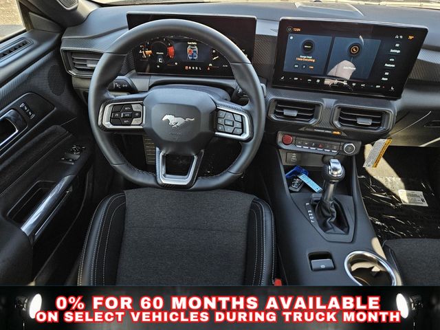 Mustang Nite Pony Package (Black Front and Rear Pony Badges, Black Mirror Caps, Painted Black Roof, and Wheels: 19" x 8.5" Ebony Black-Painted Aluminum), 4-Wheel Disc Brakes, ABS brakes, Air Conditioning, Alloy wheels, AM/FM Stereo, Auto High-beam Headlights, Automatic temperature control, Brake assist, Bumpers: body-color, Compass, Delay-off headlights, Driver door bin, Driver vanity mirror, Dual front impact airbags, Dual front side impact airbags, Electronic Stability Control, Emergency communication system: 911 Assist, Exterior Parking Camera Rear, Four wheel independent suspension, Front anti-roll bar, Front Bucket Seats, Front Center Armrest, Front dual zone A/C, Front reading lights, Fully automatic headlights, Illuminated entry, Knee airbag, Leather Shift Knob, Low tire pressure warning, Occupant sensing airbag, Outside temperature display, Overhead airbag, Overhead console, Panic alarm, Passenger door bin, Passenger vanity mirror, Power door mirrors, Power steering, Power windows, Premium Floor Liners Front and Rear (with Carpet Mats), Radio data system, Rain sensing wipers, Rear anti-roll bar, Rear Parking Sensors, Rear window defroster, Remote keyless entry, Speed control, Speed-sensing steering, Speed-Sensitive Wipers, Split folding rear seat, Sport steering wheel, Steering wheel mounted audio controls, SYNC 4, Tachometer, Telescoping steering wheel, Tilt steering wheel, Traction control, Trip computer, Variably intermittent wipers, Voltmeter, and Wheels: 18" x 8" Painted Shadow Silver Cast Aluminum. Price includes: $500 - Retail Customer Cash