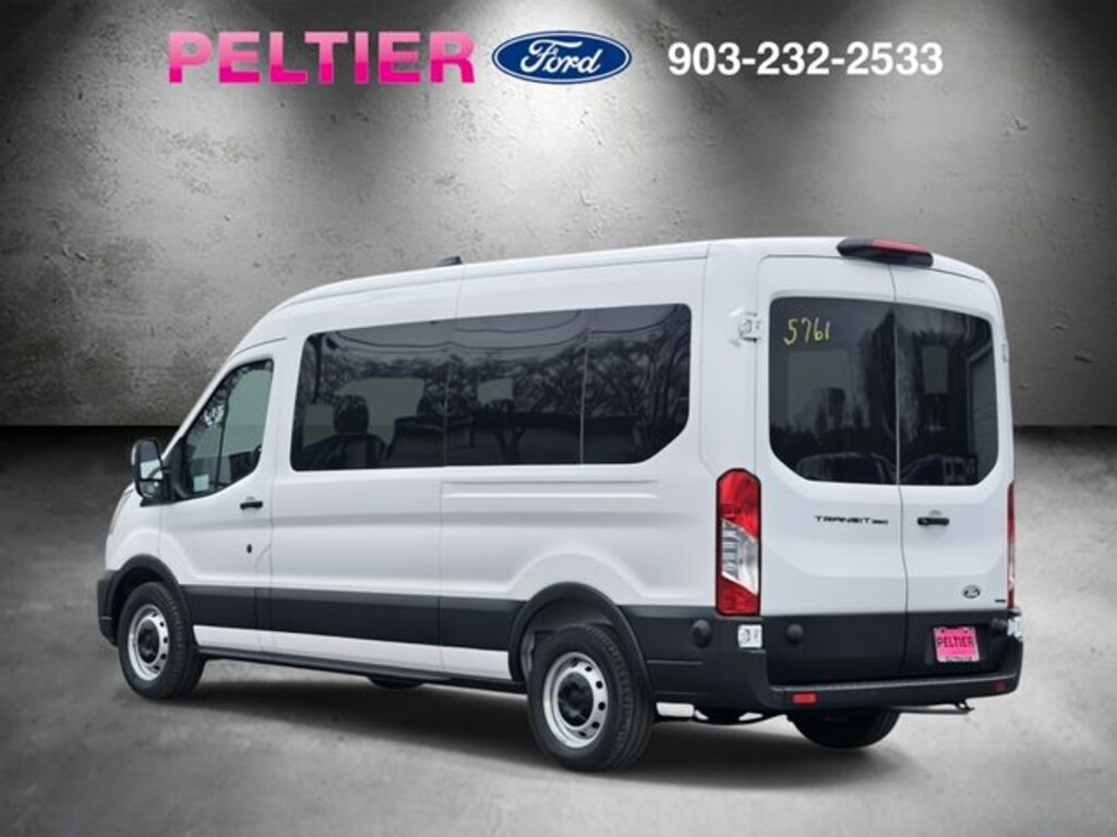 Ford Connectivity Package (1-Year Included), 15-Passenger Seats, 2 Additional Keys (4 Total), 253-Degree Rear Door Opening, 3.73 Axle Ratio, 3rd row seats: split-bench, 4-Wheel Disc Brakes, 4th-Row Bench Seat, 8 Speakers, ABS brakes, Air Conditioning, Apple CarPlay/Android Auto, Auto High-beam Headlights, Black High-Intensity Discharge (HID) Headlamps, Brake assist, Cloth Front Bucket Seats, Delay-off headlights, Driver door bin, Driver vanity mirror, Driver's Seat Mounted Armrest, Dual front impact airbags, Dual front side impact airbags, Electronic Stability Control, Emergency communication system: 911 Assist, Front anti-roll bar, Front Bucket Seats, Front License Plate Bracket, Front reading lights, Front wheel independent suspension, Illuminated entry, Internet access capable: FordPass Connect 5G, Large Center Console, Low tire pressure warning, Navigation system: Connected Navigation, Occupant sensing airbag, Overhead airbag, Panic alarm, Passenger door bin, Passenger Running Board, Passenger seat mounted armrest, Passenger vanity mirror, Power door mirrors, Power steering, Power windows, Rain sensing wipers, Rear air conditioning, Rear window defroster, Remote keyless entry, Speed control, Steering wheel mounted audio controls, SYNC 4, Tachometer, Telescoping steering wheel, Tilt steering wheel, Traction control, Variably intermittent wipers, and Wheels: 16" Steel w/Full Silver Cover.