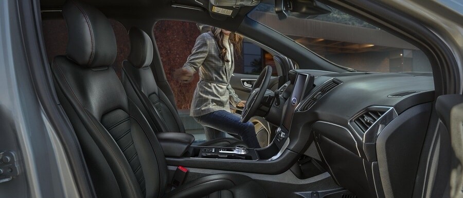 Under the hood, the Edge offers two engine options. The SE, SEL, and Titanium trims come with a 2.0-liter EcoBoost® four-cylinder engine producing 250 horsepower. The ST trim gets a more powerful 2.7-liter EcoBoost® V6 with 335 horsepower. Fuel economy ranges from 19 mpg in the city and 25 mpg on highways for the ST or 21 mpg in the city and 28 mpg on the highway for the four-cylinder models. The Edge comes standard with front-wheel drive, while all-wheel drive is available across the lineup.