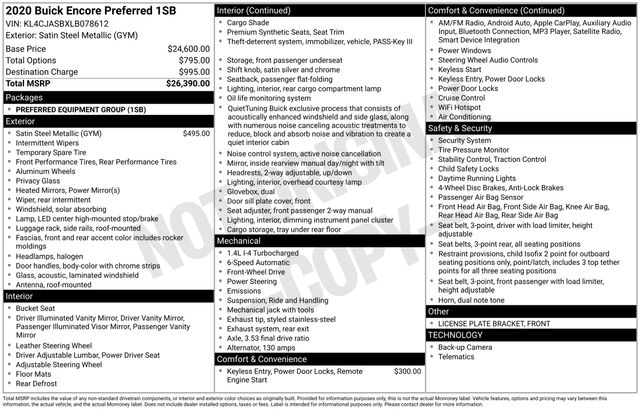 2020 Buick Encore Preferred SUV ECOTEC I4 SMPI DOHC Turbocharged VVT