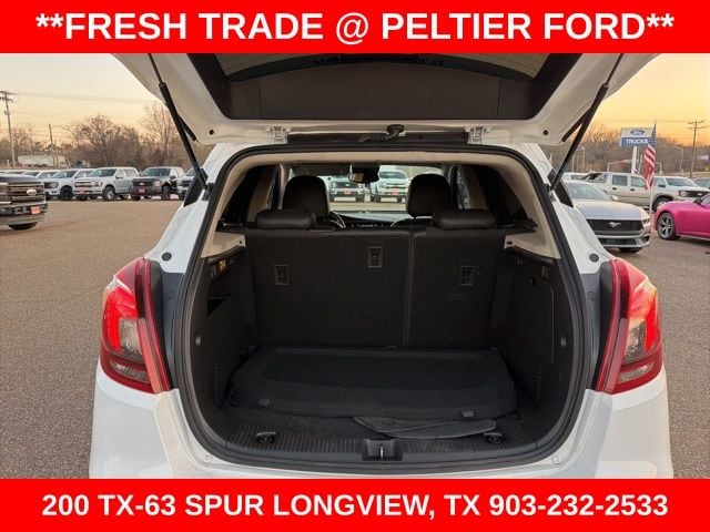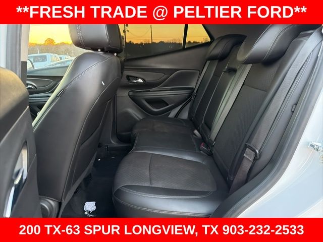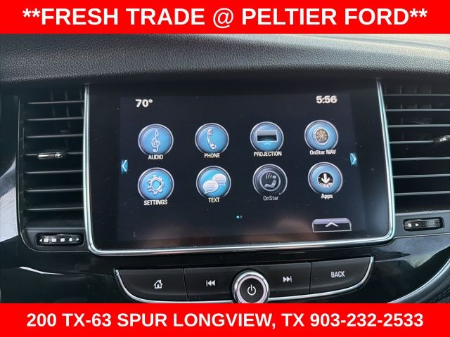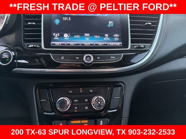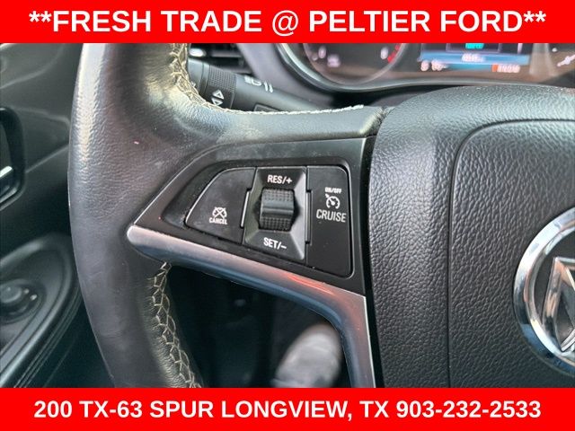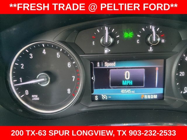 Preferred Equipment Group 1SB, 18" Aluminum Wheels, 2-Way Manual Front Passenger Seat Adjuster, 3.53 Final Drive Axle Ratio, 4-Wheel Disc Brakes, 6 Speakers, 6-Speaker Audio System, 6-Way Power Driver Seat Adjuster, ABS brakes, Air Conditioning, Alloy wheels, AM/FM radio: SiriusXM, Apple CarPlay/Android Auto, Brake assist, Bumpers: body-color, Cloth w/Leatherette Seat Trim, Compass, Delay-off headlights, Driver door bin, Driver vanity mirror, Driver's Seat Mounted Armrest, Dual front impact airbags, Dual front side impact airbags, Electronic Stability Control, Emergency communication system: OnStar and Buick connected services capable, Exterior Parking Camera Rear, Front anti-roll bar, Front Bucket Seats, Front License Plate Bracket, Front reading lights, Front wheel independent suspension, Fully automatic headlights, Heated door mirrors, Illuminated entry, Knee airbag, Leather steering wheel, Low tire pressure warning, Occupant sensing airbag, Outside temperature display, Overhead airbag, Panic alarm, Passenger door bin, Passenger vanity mirror, Power door mirrors, Power driver seat, Power steering, Power windows, Radio data system, Radio: 7" Diagonal Buick Infotainment System, Radio: Buick Infotainment System AM/FM Stereo (DISC), Rear seat center armrest, Rear side impact airbag, Rear window defroster, Rear window wiper, Remote keyless entry, Remote Vehicle Starter System, Ride & Handling Suspension, Roof rack: rails only, Security system, SiriusXM Radio, Speed control, Speed-sensing steering, Split folding rear seat, Spoiler, Steering wheel mounted audio controls, Tachometer, Telescoping steering wheel, Tilt steering wheel, Traction control, Trip computer, and Variably intermittent wipers.