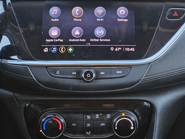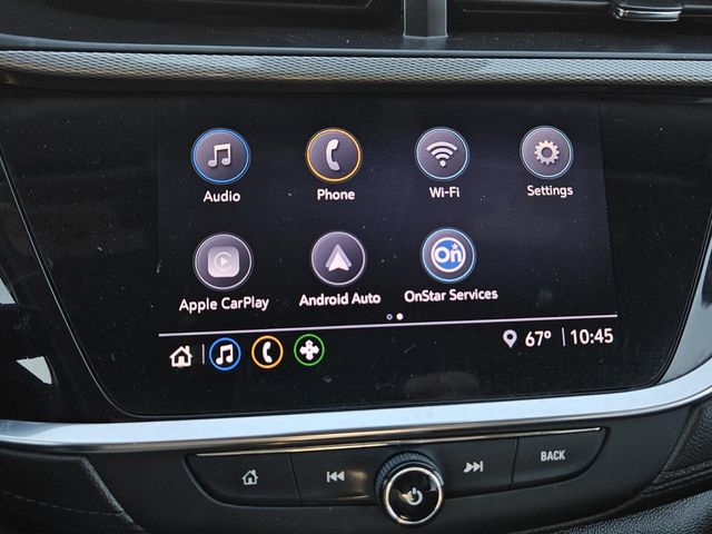 Preferred Equipment Group 1SB, 2 USB Ports w/Auxiliary Input Jack, 4-Way Manual Passenger Seat Adjuster, 4-Wheel Disc Brakes, 5.45 Final Drive Axle Ratio, 6 Speakers, 6-Way Manual Driver Seat Adjuster, ABS brakes, Air Conditioning, Alloy wheels, AM/FM radio: SiriusXM, Auto High-beam Headlights, Brake assist, Bumpers: body-color, Cloth w/Leatherette Seat Trim, Compass, Delay-off headlights, Driver door bin, Driver vanity mirror, Dual front impact airbags, Dual front side impact airbags, Electronic Stability Control, Emergency communication system: OnStar and Buick connected services capable, Enhanced Performance 6-Speaker System, Front anti-roll bar, Front Bucket Seats, Front Center Armrest, Front fog lights, Front License Plate Bracket, Front reading lights, Front wheel independent suspension, Fully automatic headlights, Heated door mirrors, Illuminated entry, Knee airbag, Low tire pressure warning, Occupant sensing airbag, Outside temperature display, Overhead airbag, Overhead console, Panic alarm, Passenger door bin, Passenger vanity mirror, Power door mirrors, Power steering, Power windows, Radio data system, Radio: 8" Diagonal Buick Infotainment System, Rear reading lights, Rear side impact airbag, Rear window defroster, Rear window wiper, Remote keyless entry, Ride & Handling Suspension, Security system, SiriusXM Radio, Speed control, Speed-sensing steering, Split folding rear seat, Spoiler, Steering wheel mounted audio controls, Tachometer, Telescoping steering wheel, Tilt steering wheel, Traction control, Trip computer, Variably intermittent wipers, Wheels: 18" Bright Silver Painted Aluminum, and Wireless Apple CarPlay/Wireless Android Auto.