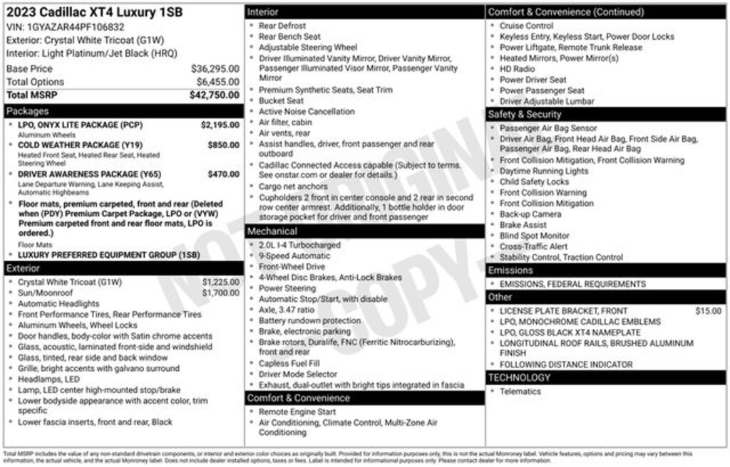 2023 Cadillac XT4 Luxury 2.0L I4 Turbocharged FWD 9-Speed Automatic Crystal White Tricoat