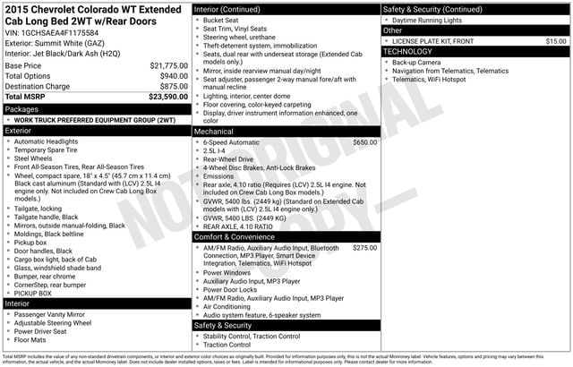 2015 Chevrolet Colorado Work Truck Truck I4 DI DOHC VVT