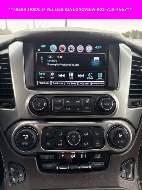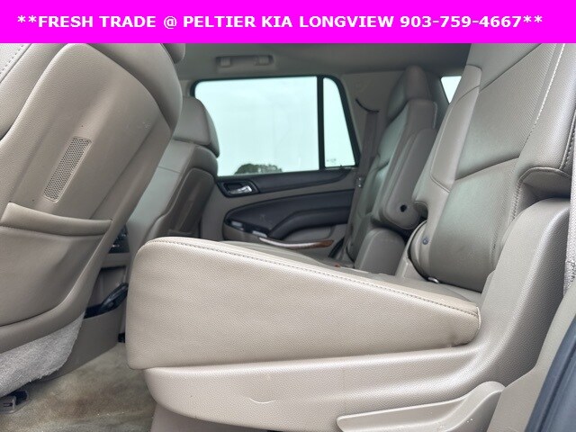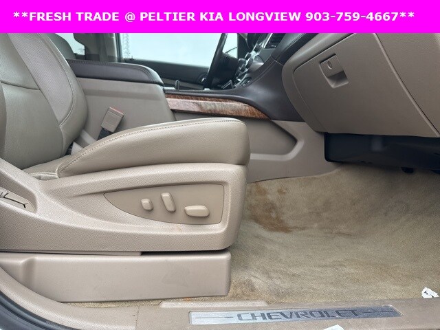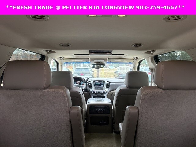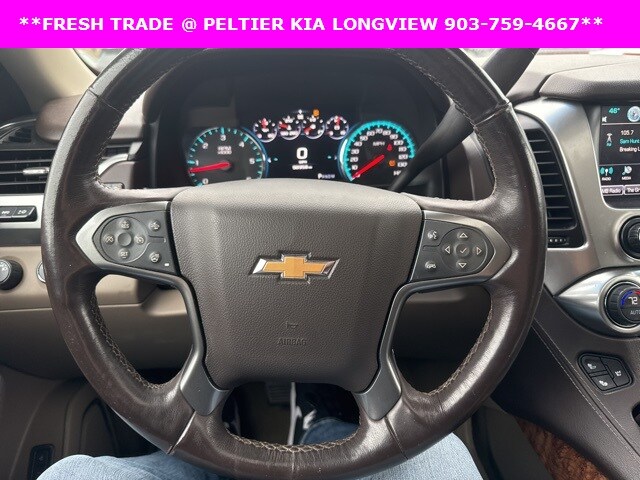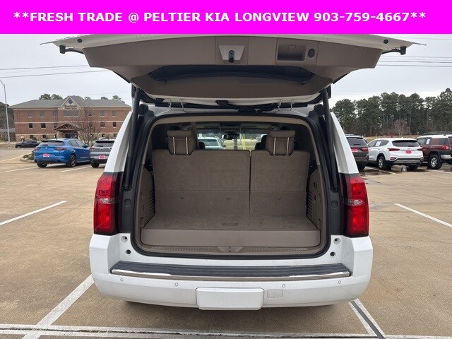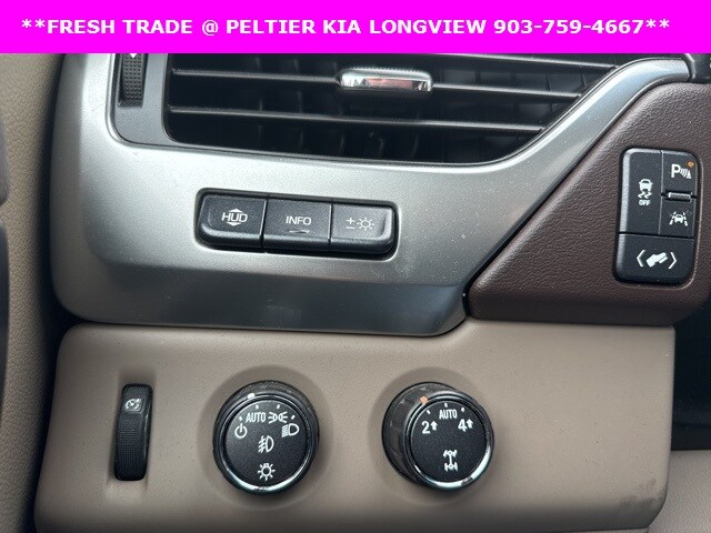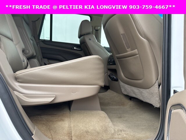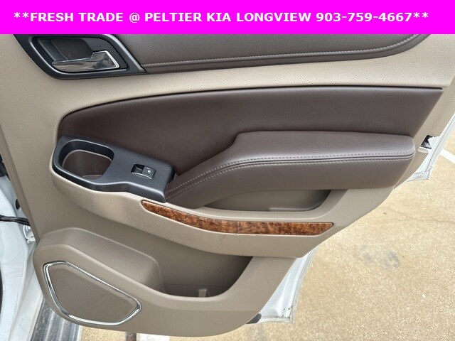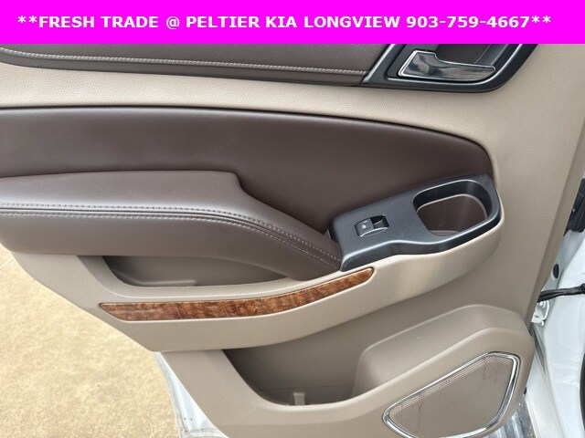 Magnetic Ride Control Suspension Package, 4WD, Cocoa/Dune w/Leather-Appointed Seat Trim, Navigation System, 10 Speakers, 1st & 2nd Row Color-Keyed Carpeted Floor Mats, 3.08 Rear Axle Ratio, 3rd Row 60/40 Power Fold Split-Bench, 3rd row seats: split-bench, 4-Wheel Antilock Disc Brakes, 4-Wheel Disc Brakes, 5 12-Volt Auxiliary Power Outlets, 6-Way Power Front Passenger Seat Adjuster, ABS brakes, Adaptive suspension, Adjustable pedals, Air Conditioning, Alloy wheels, AM/FM radio: SiriusXM, Apple CarPlay, Auto High-beam Headlights, Auto-dimming door mirrors, Auto-Dimming Inside Rear-View Mirror, Auto-dimming Rear-View mirror, Automatic temperature control, Black Assist Steps w/Chrome Accent Strip, Bodyside moldings, Bose Centerpoint Premium 10-Speaker Surround Sound, Brake assist, Bumpers: body-color, CD player, Color-Keyed Carpeting Floor Covering, Compass, Delay-off headlights, Driver door bin, Driver Inboard & Front Passenger Airbags, Driver vanity mirror, Dual front impact airbags, Dual front side impact airbags, Electronic Cruise Control w/Set & Resume Speed, Electronic Stability Control, Emergency communication system: OnStar, Enhanced Driver Instrument Information Display, Exterior Parking Camera Rear, Floor Console, Fog Lamps, Forward Collision Alert Sensor Indicator, Front & Rear Parking Assist, Front anti-roll bar, Front Bucket Seats, Front Center Armrest, Front dual zone A/C, Front fog lights, Front Heated Reclining Bucket Seats, Front reading lights, Front wheel independent suspension, Fully automatic headlights, Garage door transmitter, Hands Free Power Liftgate, Heated & Cooled Driver & Front Passenger Seats, Heated 2nd Row Seats, Heated door mirrors, Heated front seats, Heated Leather Wrapped Steering Wheel, Heated rear seats, Heated steering wheel, High-Intensity Discharge Headlights, Illuminated entry, IntelliBeam Headlamps, Lane Departure Warning System, Lane Keep Assist, Low tire pressure warning, Memory seat, Memory Settings, Occupant sensing airbag, OnStar Basic Plan For 5 Years, Outside temperature display, Overhead airbag, Overhead console, Panic alarm, Passenger door bin, Passenger vanity mirror, Passive Entry System, Pedal memory, Perforated Leather-Appointed Seat Trim, Power door mirrors, Power driver seat, Power Liftgate, Power passenger seat, Power Release 2nd Row Bucket Seats, Power steering, Power Tilt & Telescoping Steering Column, Power windows, Power-Adjustable Accelerator & Brake Pedals, Power-Folding Heated Outside Mirrors, Premium audio system: Chevrolet MyLink, Push Button Keyless Start, Radio: Chevrolet MyLink w/Navigation/AM/FM Stereo, Rain sensing wipers, Rear air conditioning, Rear anti-roll bar, Rear Cross-Traffic Alert, Rear reading lights, Rear window defroster, Rear window wiper, Remote Keyless Entry, Remote keyless entry, Roof rack: rails only, Roof-Mounted Luggage Rack Side Rails, Safety Alert Driver Seat, Security system, Side Blind Zone Alert w/Lane Change Alert, Single-Slot CD/MP3 Player, SiriusXM Satellite Radio, Speed control, Speed-sensing steering, Split folding rear seat, Spoiler, Steering wheel memory, Steering wheel mounted audio controls, Tachometer, Telescoping steering wheel, Tilt steering whee