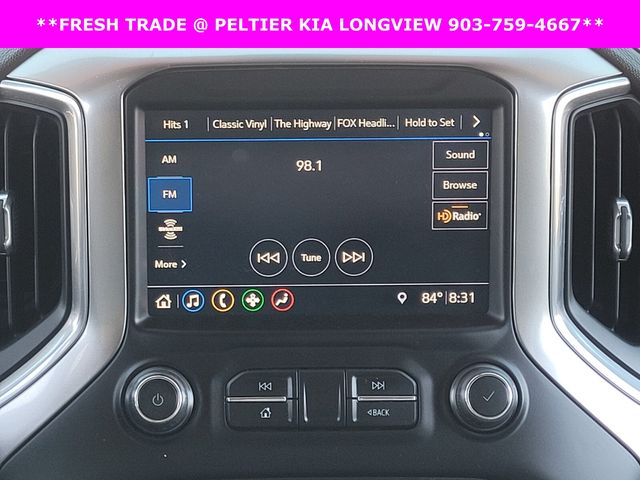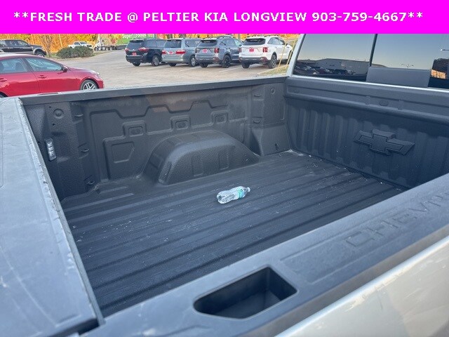 Bed Protection Package (Chevytec Spray-On Black Bedliner and Rear Wheelhouse Liners), Convenience Package (10-Way Power Driver Seat w/Lumbar, 12-Volt Rear Auxiliary Power Outlet, 40/20/40 Front Split-Bench Seat, Dual-Zone Automatic Climate Control, Electric Rear-Window Defogger, Electrical Lock Control Steering Column, EZ Lift Power Lock & Release Tailgate, Heated Driver & Front Passenger Seats, Heated Steering Wheel, Keyless Open & Start, Leather Wrapped Steering Wheel, LED Cargo Area Lighting, Manual Tilt/Telescoping Steering Column, Rear Dual USB Charging-Only Ports, Remote Vehicle Starter System, and Theft Deterrent System (Unauthorized Entry)), Convenience Package II (120-Volt Bed Mounted Power Outlet, 120-Volt Instrument Panel Power Outlet, 2 USB Ports, HD Radio, HD Rear Vision Camera, Power Sliding Rear Window w/Rear Defogger, Radio: Chevrolet Infotainment 3 Plus System, SiriusXM Radio, and Universal Home Remote), Leather Package (Leather Appointed Seat Trim), Preferred Equipment Group 1LT (2 USB Ports (First Row), 4-Way Manual Driver Seat Adjuster, 4.2" Diagonal Color Display Driver Info Center, Bluetooth® For Phone, Chevrolet Connected Access, Chevrolet w/4G LTE, Chrome Grille, Chrome Mirror Caps, Color-Keyed Carpeting Floor Covering, Compass, Deep-Tinted Glass, Electronic Cruise Control, Front Rubberized Vinyl Floor Mats, Locking Tailgate, Manual Tilt Wheel Steering Column, OnStar & Chevrolet Connected Services Capable, Power Door Locks, Power Front Windows w/Driver Express Up/Down, Power Front Windows w/Passenger Express Down, Power Rear Windows w/Express Down, Rear 60/40 Folding Bench Seat (Folds Up), Rear Rubberized-Vinyl Floor Mats, Rear Vision Camera, Remote Keyless Entry, Single-Zone Manual/Semi-Automatic Air Conditioning, Steering Wheel Audio Controls, and Urethane Steering Wheel), Texas Edition (Heavy-Duty Rear Locking Differential and Texas Edition Badging), Trailering Package (Hitch Guidance), Up-Level Rear Seat w/Storage Package, 8-Speed Automatic, Gideon/Very Dark Atmosphere Leather, 170 Amp Alternator, 220 Amps Alternator, 3.23 Rear Axle Ratio, 4-Wheel Disc Brakes, 40/20/40 Front Split Bench Seat, 6 Speakers, ABS brakes, Air Conditioning, Alloy wheels, AM/FM radio, Apple CarPlay/Android Auto, Auxiliary External Transmission Oil Cooler, Brake assist, Bumpers: chrome, Cloth Seat Trim, Delay-off headlights, Driver door bin, Driver vanity mirror, Dual front impact airbags, Dual front side impact airbags, Electronic Stability Control, External Engine Oil Cooler, Front anti-roll bar, Front Center Armrest w/Storage, Front License Plate Kit, Front reading lights, Front wheel independent suspension, Fully automatic headlights, Heated door mirrors, Heavy Duty Suspension, Illuminated entry, Integrated Trailer Brake Controller, Low tire pressure warning, Occupant sensing airbag, Outside temperature display, Overhead airbag, Overhead console, Panic alarm, Passenger door bin, Passenger vanity mirror, Power door mirrors, Power steering, Power windows, Premium audio system: Chevrolet Infotainment System 3, Radio data system, Radio: Chevrolet Infotainment 3 System, Rear reading lights, Rear step bumper, Remote keyless entry, Speed control, Speed-sensing steering, Split folding rear seat, Steering wheel mounted audio controls, Tachometer, Tilt steering wheel, Traction control, Trip computer, Variably intermittent wipers, Voltmeter, Wheel Locks (Set of 4) (LPO), Wheels: 17" x 8" Bright Silver Painted Al