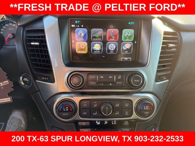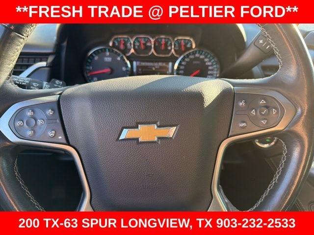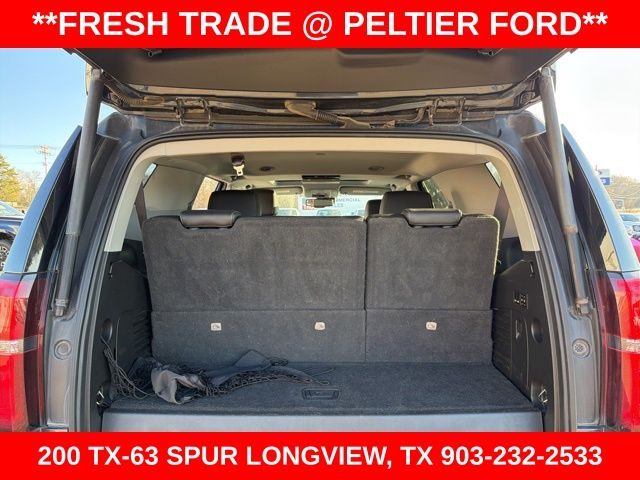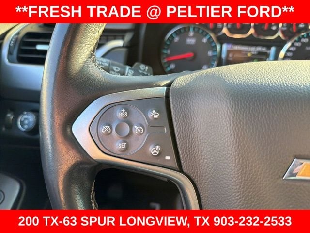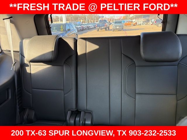 All-Weather Floor Liner Package (LPO), Enhanced Driver Alert Package (Y86) (Forward Collision Alert, IntelliBeam Headlamps, Lane Keep Assist w/Lane Departure Warning, and Low Speed Forward Automatic Braking), License Plate Front Mounting Package, Magnetic Ride Control Suspension Package, Preferred Equipment Group 1LZ (1st & 2nd Row Color-Keyed Carpeted Floor Mats, 3rd Row 60/40 Power Fold Split-Bench, 4-Wheel Antilock Disc Brakes w/Brake Assist, 5 12-Volt Auxiliary Power Outlets, Auto-Dimming Inside Rear-View Mirror, Black Assist Steps w/Chrome Accent Strip, Bose Centerpoint Premium 10-Speaker Surround Sound, Cargo Net, Color-Keyed Carpeting Floor Covering, Driver Inboard & Front Passenger Airbags, Electronic Cruise Control w/Set & Resume Speed, Floor Console, Fog Lamps, Front & Rear Park Assist, Front Passenger 6-Way Power Seat Adjuster, Hands Free Power Liftgate, Heated & Ventilated Driver & Front Passenger Seats, Heated 2nd Row Seats, Heated Leather Wrapped Steering Wheel, Lane Change Alert w/Side Blind Zone Alert, Memory Settings, Passive Entry System, Power Release 2nd Row Bucket Seats, Power Tilt & Telescopic Steering Column, Power-Adjustable Accelerator & Brake Pedals, Power-Folding Heated Outside Mirrors, Push Button Keyless Start, Rear Cross Traffic Alert, Remote Keyless Entry, Remote Vehicle Start, Roof-Mounted Luggage Rack Side Rails, SiriusXM NavTraffic, SiriusXM Radio, Universal Home Remote, and Wireless Charging), RST 6.2L Performance Edition (170 Amp Alternator, Integrated Trailer Brake Controller, and Unique RST Emblem), RST Edition (Black Beltline Moldings, Black Mirror Caps, Black Roof Rails, Body-Color Door Handles & Headlamp Accents, Front & Rear Black Bowties, Set of 4 Wheel Locks (LPO), Unique Gloss Black Sport Grille, and Wheels: 22" x 9" Gloss Black Aluminum), Sun, Entertainment & Destinations Package (Power Sunroof and Rear Seat Blu-Ray/DVD Entertainment System), Jet Black Leather, 10 Speakers, 3rd row seats: split-bench, 4-Wheel Disc Brakes, ABS brakes, Adaptive suspension, Adjustable pedals, Air Conditioning, Alloy wheels, AM/FM radio: SiriusXM, Apple CarPlay/Android Auto, Auto High-beam Headlights, Auto-dimming door mirrors, Auto-dimming Rear-View mirror, Automatic temperature control, Bluetooth® For Phone, Bodyside moldings, Brake assist, Bumpers: body-color, CD player, Compass, Delay-off headlights, Driver door bin, Driver vanity mirror, Dual front impact airbags, Dual front side impact airbags, Electronic Stability Control, Emergency communication system: OnStar and Chevrolet connected services capable, Exterior Parking Camera Rear, Front anti-roll bar, Front Bucket Seats, Front Center Armrest, Front dual zone A/C, Front fog lights, Front Heated Reclining Bucket Seats, Front reading lights, Front wheel independent suspension, Fully automatic headlights, Garage door transmitter, HD Radio, Heated door mirrors, Heated front seats, Heated rear seats, Heated steering wheel, High-Intensity Discharge Headlights, Illuminated entry, Low tire pressure warning, Memory seat, Navigation System, Occupant sensing airbag, Outside temperature display, Overhead airbag, Overhead console, Panic alarm, Passenger door bin, Passenger vanity mirror, Pedal memory, Perforated Leather-Appointed Seat Trim, Power door mirrors, Power driver seat, Power Liftgate, Power passenger seat, Power steering, Power windows, Premium audio system: Chevrolet MyLink, Radio: Chevrolet Infotainment AM/FM Stereo w/Nav, Rain sensing wipers, Rear air conditioning, Rear anti-roll bar, Rear reading lights, Rear window defroster, Rear window wiper, Remote keyless entry, Roof rack: rails only, Security system, Single-Slot CD/MP3 Player, Speed control, Speed-sensing steering, Split folding rear seat, Spoiler, Steering wheel memory, Ste