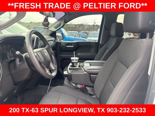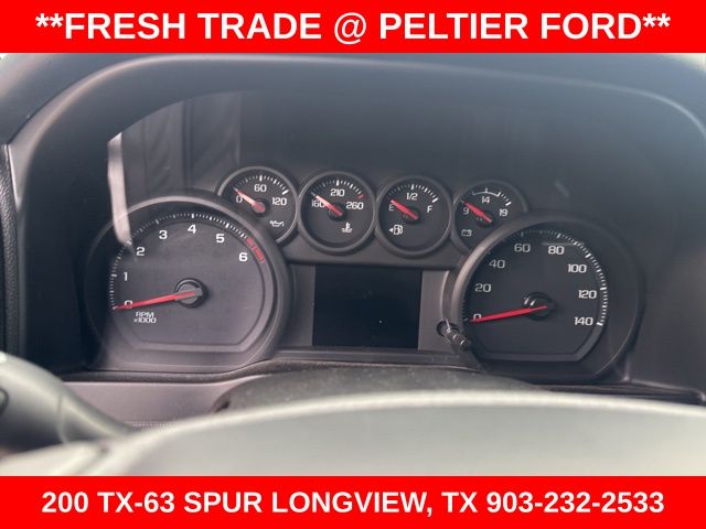 Custom Convenience Package (Electric Rear-Window Defogger, EZ Lift Power Lock & Release Tailgate, LED Cargo Area Lighting, Remote Vehicle Starter System, and Theft Deterrent System (Unauthorized Entry)), Custom Value Package, Infotainment Package (4G LTE Wi-Fi Hot Spot Capable, Chevrolet Connected Access Capable, OnStar & Chevrolet Connected Services Capable, and SiriusXM Radio), Preferred Equipment Group 1CX (170 Amp Alternator, 3.5" Diagonal Monochromatic Display, Bluetooth® For Phone, Body Color Grille, Color-Keyed Carpeting Floor Covering, Compass, Deep-Tinted Glass, Electronic Cruise Control, Front Frame-Mounted Black Recovery Hooks, Front Rubberized Vinyl Floor Mats, Manual Tilt Wheel Steering Column, Power Door Locks, Power Front Windows w/Driver Express Up/Down, Power Front Windows w/Passenger Express Down, Power Rear Windows w/Express Down, Rear 60/40 Folding Bench Seat (Folds Up), Rear Rubberized-Vinyl Floor Mats, Remote Keyless Entry, and Standard Tailgate), Trailering Package (Hitch Guidance), 6-Speed Automatic Electronic with Overdrive, Black Cloth, 3.42 Rear Axle Ratio, 4-Wheel Disc Brakes, 40/20/40 Front Split Bench Seat, 6 Speakers, ABS brakes, Air Conditioning, Alloy wheels, AM/FM radio: SiriusXM, Apple CarPlay/Android Auto, Brake assist, Bumpers: body-color, Cloth Seat Trim, Delay-off headlights, Driver door bin, Driver vanity mirror, Dual front impact airbags, Dual front side impact airbags, Electronic Stability Control, Front anti-roll bar, Front Center Armrest w/Storage, Front reading lights, Front wheel independent suspension, Fully automatic headlights, Heated door mirrors, Heavy Duty Suspension, Illuminated entry, Low tire pressure warning, Occupant sensing airbag, Outside temperature display, Overhead airbag, Overhead console, Panic alarm, Passenger door bin, Passenger vanity mirror, Polished Exhaust Tip, Power door mirrors, Power steering, Power windows, Premium audio system: Chevrolet Infotainment 3, Radio data system, Radio: Chevrolet Infotainment 3 System, Rear reading lights, Rear step bumper, Rear window defroster, Remote keyless entry, Security system, Speed control, Speed-sensing steering, Split folding rear seat, Tachometer, Tilt steering wheel, Traction control, Trip computer, Variably intermittent wipers, Voltmeter, Wheel Locks (Set of 4) (LPO), and Wheels: 20" x 9" Bright Silver Painted Aluminum.