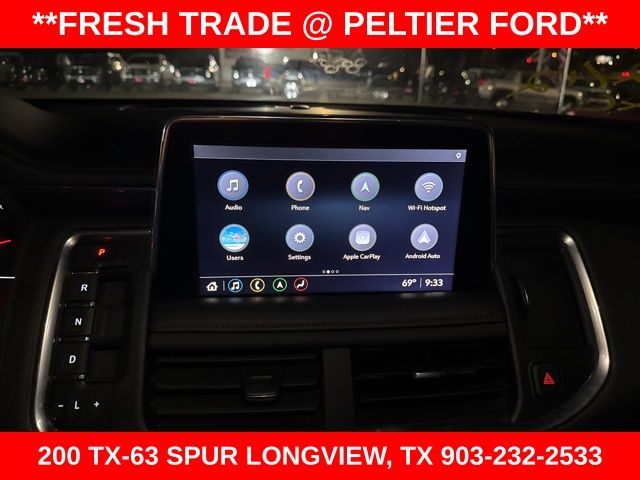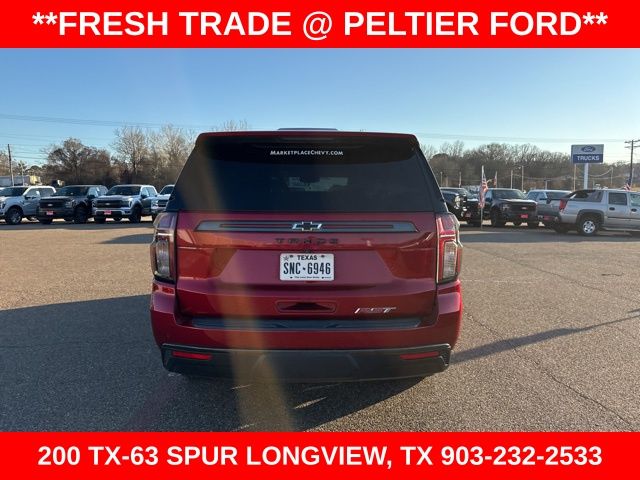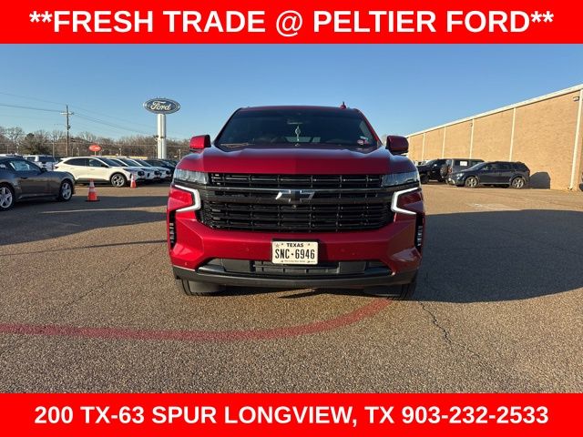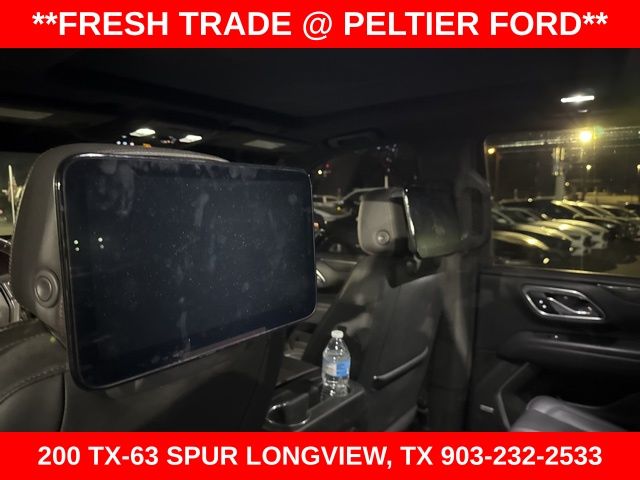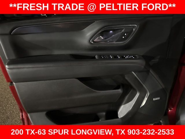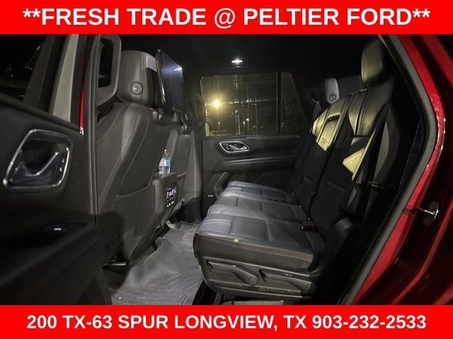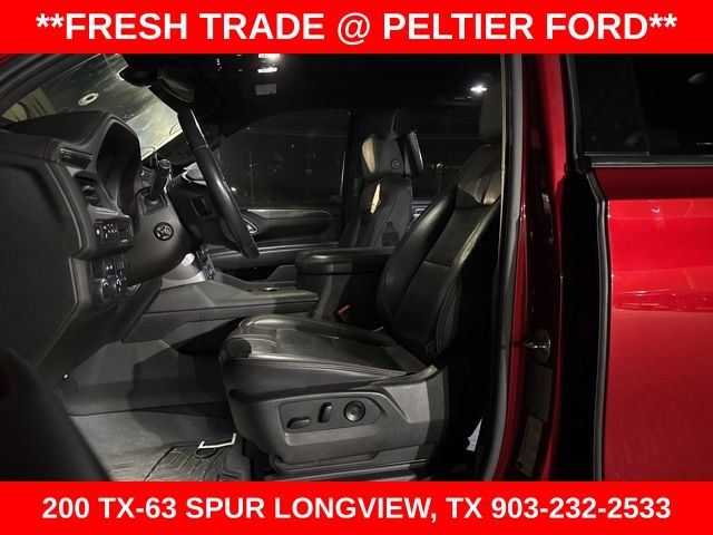 Advanced Trailering Package (Advanced Trailering System, Hitch Guidance w/Hitch View, and Integrated Trailer Brake Controller), Driver Alert Package (Front & Rear Park Assist, Lane Change Alert w/Side Blind Zone Alert, Lane Keep Assist w/Lane Departure Warning, and Rear Cross Traffic Alert), License Plate Front Mounting Package, Luxury Package (2nd Row Pwr Release 60/40 Split-Folding Bench Seat, 3rd Row 60/40 Power-Folding Split-Bench Seat, Automatic Heated Steering Wheel, HD Surround Vision, Heated 2nd Row Outboard Seats, Memory Settings, Outside Heated Power-Adjustable Mirrors, Power Tilt & Telescopic Steering Column, and Rear Pedestrian Alert), Max Trailering Package (Extra Capacity Cooling System), Preferred Equipment Group 1SP (1st & 2nd Row Color-Keyed Carpeted Floor Mats, 2 USB Data Ports, Auto-Dimming Inside Rear-View Mirror, Bright Front & Rear Door Sill Plates, Color-Keyed Carpeting Floor Covering, Driver & Front Outboard Passenger Airbags, Floor Console w/Storage Area, Hands-Free Rear Power Programmable Liftgate, HD Radio, Infotainment Display, Leather-Wrapped Steering Wheel, LED Daytime Running Lamps, Memory Settings for Driver, Remote Start, SiriusXM Radio w/360L, and Universal Home Remote), Rear Media & Nav Package (Radio: Chevrolet Infotainment 3 Premium System, Rear Seat Media System, and SiriusXM NavTraffic), Jet Black/Victory Red Leather, Navigation System, 10-Way Power Driver & Passenger Seat Adjusters, 3.23 Rear Axle Ratio, 3rd row seats: split-bench, 4-Wheel Disc Brakes, 9 Speakers, ABS brakes, Air Conditioning, Alloy wheels, AM/FM radio: SiriusXM with 360L, Apple CarPlay/Android Auto, Auto High-beam Headlights, Auto-dimming Rear-View mirror, Automatic temperature control, Bose 9-Speaker Stereo Audio System Feature, Brake assist, Bumpers: body-color, Compass, Delay-off headlights, Driver door bin, Driver vanity mirror, Dual front impact airbags, Dual front side impact airbags, Dual-Pane Power Panoramic Sunroof, Electronic Stability Control, Eme