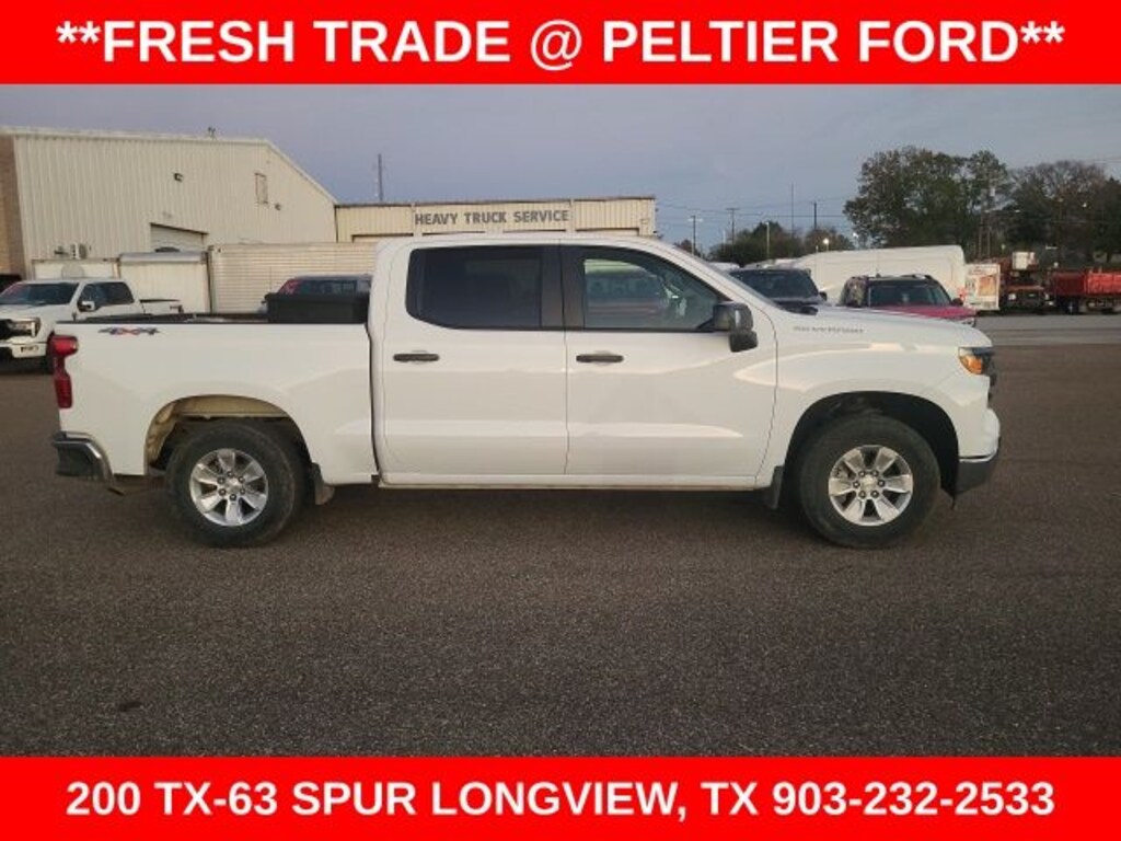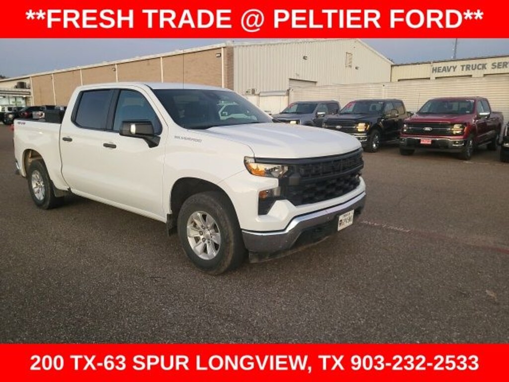 Clean CARFAX. CARFAX One-Owner. Summit White 2023 Chevrolet EcoTec3 5.3L V8 4D Crew Cab Silverado 1500 WT 10-Speed Automatic 4WD