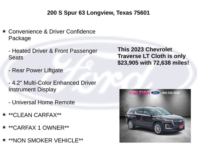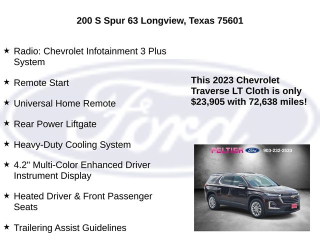 This 2023 Chevrolet Traverse LT 1LT comes equipped with a remarkable array of features, including: