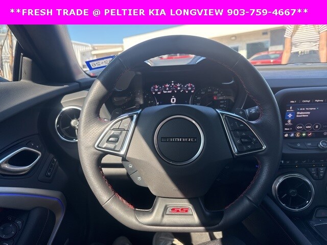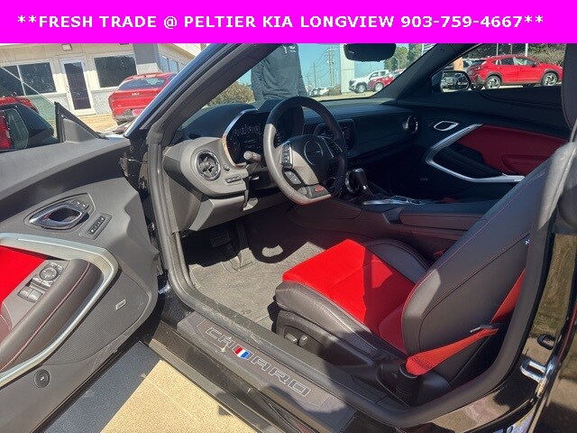 Adrenaline Red Interior Package, Preferred Equipment Group 2SS, 2.77 Rear Axle Ratio, 4-Wheel Disc Brakes, 6-Way Power Front Passenger Seat Adjuster, 7 Speakers, 8-Way Power Driver Seat Adjuster, ABS brakes, Air Conditioning, Alloy wheels, AM/FM radio: SiriusXM with 360L, Apple CarPlay/Android Auto, Auto-dimming door mirrors, Automatic temperature control, Bluetooth® For Phone, Bose Premium 7-Speaker Audio System Feature, Brake assist, Bumpers: body-color, Compass, Convertible roof lining, Custom Launch Control, Delay-off headlights, Driver door bin, Driver vanity mirror, Dual front impact airbags, Dual front side impact airbags, Electronic Stability Control, Exterior Parking Camera Rear, Four wheel independent suspension, Front anti-roll bar, Front Bucket Seats, Front Center Armrest, Front dual zone A/C, Front License Plate Bracket, Front reading lights, Front Sport Bucket Seats, Fully automatic headlights, Glass rear window, Heads-Up Display, Heated door mirrors, Heated Driver & Front Passenger Seats, Heated front seats, Heated steering wheel, Illuminated entry, Knee airbag, Leather Shift Knob, Leather-Trimmed Seat Trim, Low tire pressure warning, Memory seat, Occupant sensing airbag, Outside temperature display, Paddle-Shift Manual Controls, Panic alarm, Passenger door bin, Passenger vanity mirror, Power convertible roof, Power door mirrors, Power driver seat, Power passenger seat, Power steering, Power windows, Premium audio system: Chevrolet Infotainment System, Radio data system, Radio: Chevrolet Infotainment 3 Plus System, Rear anti-roll bar, Rear window defroster, Red Seat Belt Color, Red-Painted Calipers, Remote keyless entry, Remote Vehicle Starter System, Security system, SiriusXM w/360L, Speed control, Speed-sensing steering, Spoiler, Steering wheel mounted audio controls, Tachometer, Telescoping steering wheel, Tilt steering wheel, Traction control, Transmission Oil Cooler, Trip computer, Variably intermittent wipers, Ventilated Driver & Front Passenger Seats, Ventilated front seats, Voltmeter, Wheels: 20" x 8.5" Fr & 20" x 9.5" Rr 5-Spoke Alum, and Wheels: SS 20" x 8.5" Fr/20" x 9.5" Rr Satin Blk (LPO)