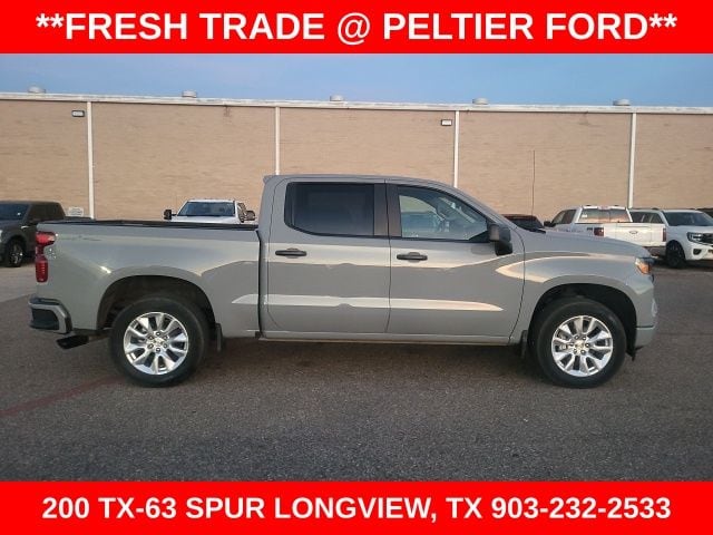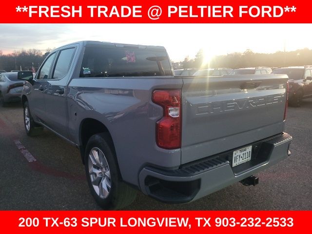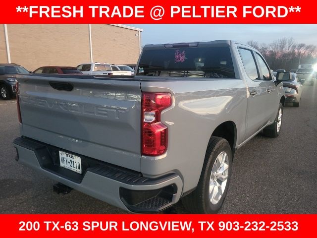 Clean CARFAX. CARFAX One-Owner. Slate Gray Metallic 2024 Chevrolet 2.7L I4 Turbocharged DOHC 16V LEV3-SULEV30 310hp 4D Crew Cab Silverado 1500 Custom 8-Speed Automatic 4WD