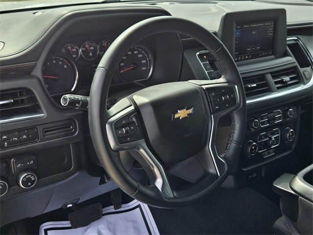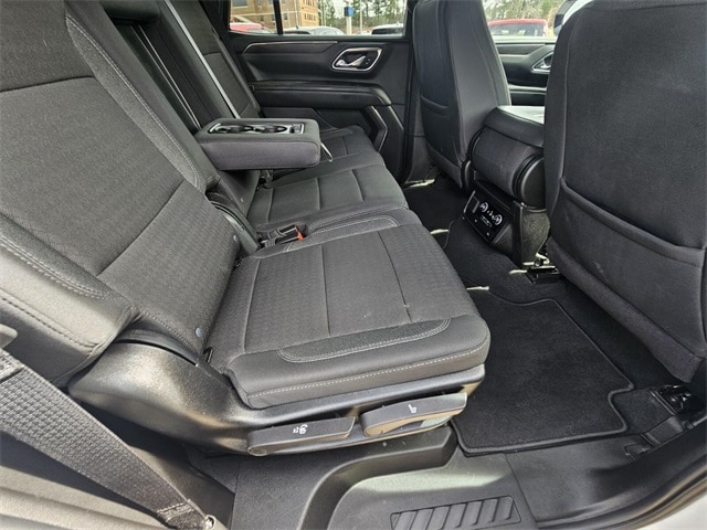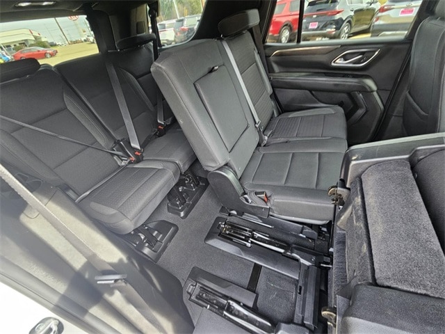 Driver Alert Package (Lane Change Alert w/Side Blind Zone Alert and Rear Cross Traffic Alert), License Plate Front Mounting Package, Preferred Equipment Group 1LS (1st & 2nd Row Color-Keyed Carpeted Floor Mats, Color-Keyed Carpeting Floor Covering, Driver & Front Outboard Passenger Airbags, Floor Console w/Storage Area, LED Daytime Running Lamps, Remote Start, SiriusXM w/360L, and Wrapped Steering Wheel), Jet Black Cloth, 3.23 Rear Axle Ratio, 3rd row seats: split-bench, 4-Wheel Disc Brakes, 6 Speakers, 6-Speaker Audio System Feature, ABS brakes, Air Conditioning, Alloy wheels, AM/FM radio: SiriusXM with 360L, Apple CarPlay/Android Auto, Auto High-beam Headlights, Automatic temperature control, Brake assist, Bumpers: body-color, Compass, Delay-off headlights, Driver door bin, Driver vanity mirror, Dual front impact airbags, Dual front side impact airbags, Electronic Stability Control, Emergency communication system: OnStar and Chevrolet connected services capable, Four wheel independent suspension, Front 40/20/40 Split-Bench Seat, Front anti-roll bar, Front Bucket Seats, Front Center Armrest, Front dual zone A/C, Front High-Back Reclining Bucket Seats, Front reading lights, Frontal Airbags, Fully automatic headlights, Heated door mirrors, Illuminated entry, Infotainment Display, Low tire pressure warning, Occupant sensing airbag, Outside temperature display, Overhead airbag, Overhead console, Panic alarm, Passenger door bin, Passenger vanity mirror, Power door mirrors, Power driver seat, Power passenger seat, Power steering, Power windows, Premium audio system: Chevrolet Infotainment 3, Premium Cloth Seat Trim, Premium Smooth Ride Suspension, Radio: Chevrolet Infotainment 3 System, Rain sensing wipers, Rear air conditioning, Rear anti-roll bar, Rear reading lights, Rear seat center armrest, Rear window defroster, Rear window wiper, Remote keyless entry, Roof rack: xxxxxx, Security system, Speed control, Speed-sensing steering, Split folding rear seat, Spoiler, Steering wheel mounted audio controls, Tachometer, Telescoping steering wheel, Tilt steering wheel, Traction control, Trip computer, Variably intermittent wipers, Voltmeter, Wheels: 18" x 8.5" Bright Silver Painted Aluminum, and Wheels: 20" x 9" Painted Aluminum.