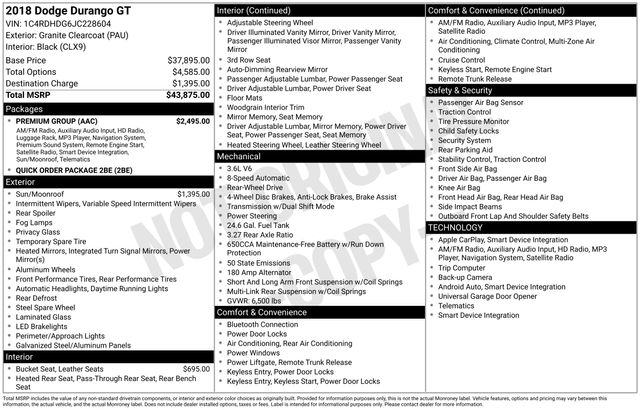 This 2018 Dodge Durango GT is a versatile and well-equipped SUV that's ready to take on your next adventure. Under the hood, you'll find a powerful 3.6L V6 engine paired with an 8-speed automatic transmission, delivering an impressive balance of performance and efficiency with 19 city/26 highway MPG.