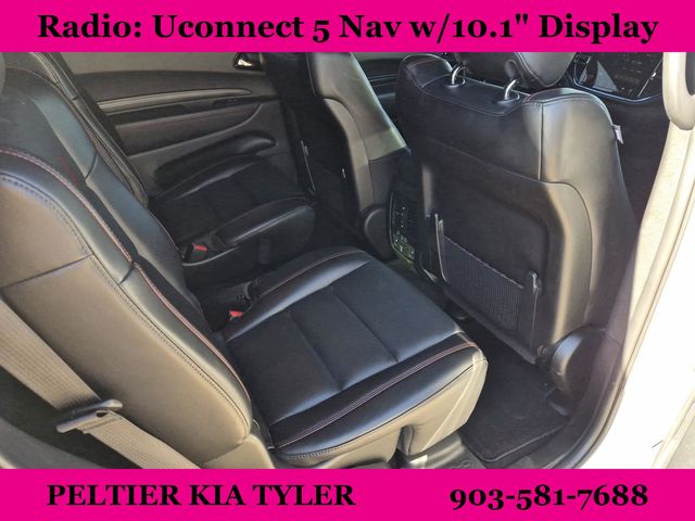 **LOCAL TRADE**, **APPLE CAR PLAY / ANDROID AUTO**, **SUNROOF/MOONROOF**, **TOWING PACKAGE**, **ALLOY WHEELS**, **BACKUP CAMERA**, 1-Year Trial (Registration Required), 10.1" Touchscreen Display, 115V Auxiliary Power Outlet, 180 Amp Alternator, 2nd Row Mini Console w/Cupholders, 3rd Row Floor Mat & Mini Console, 4G LTE Wi-Fi Hot Spot, 506 Watt Amplifier, 7 & 4 Pin Wiring Harness, 9 Alpine Amplified Speakers w/Subwoofer, Adaptive Cruise Control w/Stop, Advanced Brake Assist, Apple CarPlay, Apple CarPlay/Android Auto, Auto High Beam Headlamp Control, Auto-Dimming Exterior Driver Mirror, Auto-dimming Rear-View mirror, Black Roof Rails, Blacktop Package, Bright Cargo Area Scuff Pads, Bright Front Door Sill Scuff Pads, Bumpers: body-color, Class IV Receiver Hitch, Cloth Bucket Seats w/Shift Insert, Compass, Connected Travel & Traffic Services, Disassociated Touchscreen Display, Dual Remote USB Port - Charge Only, Exterior Mirrors w/Heating Element, Exterior Mirrors w/Memory, Exterior Mirrors w/Supplemental Signals, Floor Console w/Leather Armrest, Full Speed Forward Collision Warning Plus, Gloss Black Badges, Gloss Black Exterior Mirrors, Google Android Auto, GPS Antenna Input, GPS Navigation, GT Gloss Black Badging, HD Radio, Heated door mirrors, Heated Second Row Seats, Heavy-Duty Engine Cooling, Integrated Center Stack Radio, Integrated Roof Rail Crossbars, Integrated Voice Command w/Bluetooth, Lane Departure Warning Plus, Leather Trimmed Bucket Seats, Leather Wrapped Door Panels, LED Auxiliary Low Beam & Turn Signal, Manufacturer's Statement of Origin, ParkSense Front/Rear Park Assist w/Stop, Power 6x9 Multi-Function Foldaway Mirrors, Power 8-Way Driver Memory 8-Way Passenger Seats, Power door mirrors, Power Driver/Passenger 4-Way Lumbar Adjust, Power Sunroof, Power Tilt & Telescopic Steering Column, Premium Door Trim Panel, Premium Instrument Panel, Premium LED Fog Lamps, Quick Order Package 2BH GT Premium, Radio: Uconnect 5 Nav w/10.1" Display, Radio/Driver Seat/Mirrors Memory, Rain Sensitive Windshield Wipers, Rear Load Leveling Suspension, Red Accent Stitching, Satin Black Dodge Tail Lamp Badge, Security Alarm, SiriusXM Guardian - Included Trial (B), SiriusXM w/360L, Spoiler, Sun Visors w/Illuminated Vanity Mirrors, Trailer Brake Control, USB Host Flip, Ventilated Front Seats, Wheels: 20" x 8.0" Black Noise Aluminum, Wireless Charging Pad.