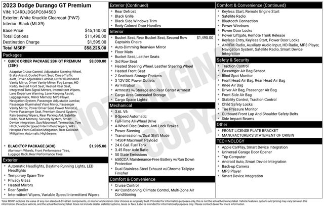 Odometer is 12595 miles below market average! 2023 Dodge Durango GT 3.6L V6 24V VVT AWD 8-Speed Automatic White Knuckle Clearcoat