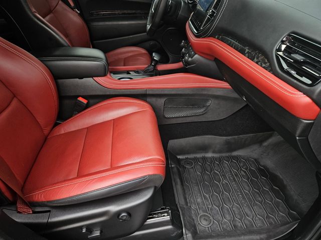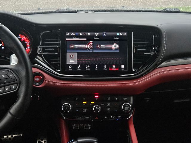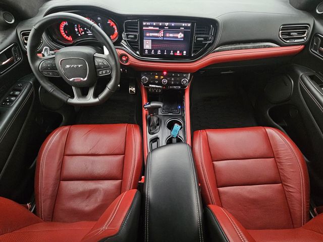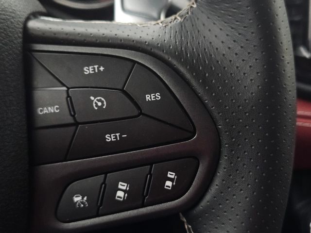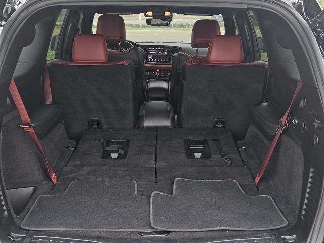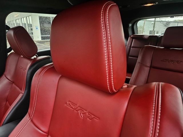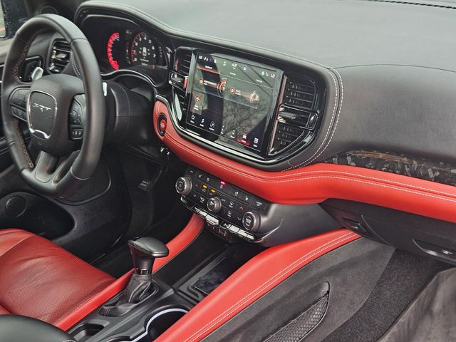 Black Package (Eclipse Black Exhaust Tips, Gray Metallic Badges, Satin Black Dodge Tail Lamp Badge, and Wheels: 20" x 10" Lights Out Aluminum), Quick Order Package 2XY Hellcat Premium (1 USB Charging Port in Console, 12V Auxiliary Power Outlet In Console, 19 harman/kardon Amplified Speakers w/Subwoofer, 2nd Row Console w/Armrest & Storage, 3rd Row Floor Mat & Full Console, 7 & 4 Pin Wiring Harness, 825 Watt Amplifier, Adaptive Cruise Control w/Stop, Advanced Brake Assist, Blind Spot w/Trailer Detection, Class IV Receiver Hitch, Forged Carbon Fiber Interior Accents, Full Speed Forward Collision Warning Plus, High Performance Laguna Leather Seats, Illuminated Rear Cupholders, Lane Departure Warning Plus, Red Seat Belts, Suede Headliner, and Trailer Brake Control), AWD, Navigation system: TomTom, 3.70 Rear Axle Ratio, 3rd row seats: split-bench, 4-Wheel Disc Brakes, 9 Speakers, ABS brakes, Adaptive suspension, Air Conditioning, Alloy wheels, AM/FM radio: SiriusXM w/360L, Apple CarPlay/Android Auto, Audio memory, Auto High-beam Headlights, Auto-dimming door mirrors, Auto-dimming Rear-View mirror, Automatic temperature control, Brake assist, Bumpers: body-color, Compass, Delay-off headlights, Driver door bin, Driver vanity mirror, Dual front impact airbags, Dual front side impact airbags, Electronic Stability Control, Emergency communication system, Four wheel independent suspension, Front anti-roll bar, Front Bucket Seats, Front Center Armrest w/Storage, Front dual zone A/C, Front reading lights, Fully automatic headlights, Garage door transmitter, Gloss Black Exterior Mirrors, Heated door mirrors, Heated front seats, Heated rear seats, Heated steering wheel, Illuminated entry, Knee airbag, Leather Shift Knob, Leather steering wheel, Leather Trimmed Bucket Seats, Low tire pressure warning, Memory seat, Occupant sensing airbag, Outside temperature display, Overhead airbag, Overhead console, Panic alarm, ParkView Rear Back-Up Camera, Passenger door bin, Passenger vanity mirror, Power door mirrors, Power driver seat, Power Liftgate, Power passenger seat, Power steering, Power windows, Radio data system, Radio: Uconnect 5 Nav w/10.1" Display, Rain sensing wipers, Rear air conditioning, Rear anti-roll bar, Rear reading lights, Rear window defroster, Rear window wiper, Remote keyless entry, Security system, Speed control, Speed-sensing steering, Speed-Sensitive Wipers, Split folding rear seat, Spoiler, Sport steering wheel, Steering wheel mounted audio controls, Tachometer, Telescoping steering wheel, Tilt steering wheel, Traction control, Trip computer, Turn signal indicator mirrors, Variably intermittent wipers, Ventilated front seats, Voltmeter, and Wheels: 20" x 10" Machine Face w/Dark Pockets.
