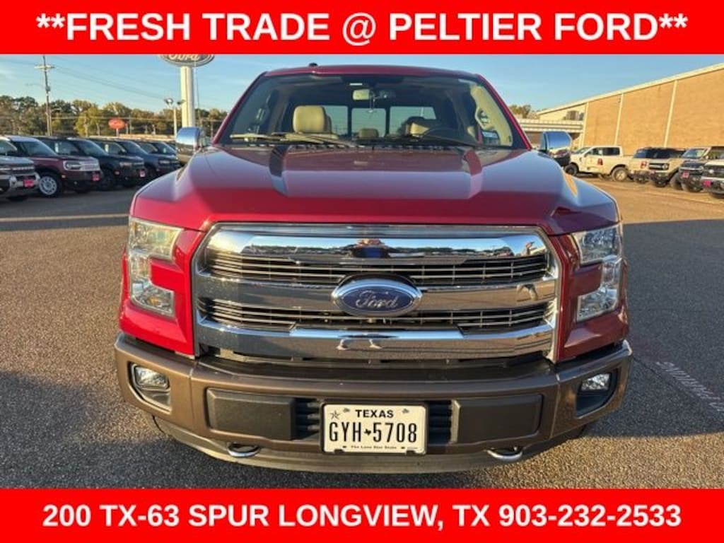 Equipment Group 501A Mid (110V/400W Outlet, BLIS Blind Spot Information System, LED Side-Mirror Spotlights, Power Glass Sideview Mirr w/Body-Color Skull Caps, Remote Start System, Reverse Sensing System, and Universal Garage Door Opener), Lariat Chrome Appearance Package (Chrome 3-Bar Style Grille w/Chrome Surround, Chrome Angular Step Bars, Chrome Door Handles w/Body-Color Bezel, Chrome Skull Caps on Exterior Mirrors, Single-Tip Chrome Exhaust, and Wheels: 18" Chrome-Like PVD), Trailer Tow Package (Auxiliary Transmission Oil Cooler, Class IV Trailer Hitch Receiver, and Upgraded Front Stabilizer Bar), 4WD, Navigation System, Voice-Activated Navigation, 18" Machined-Aluminum Wheels, 4-Wheel Disc Brakes, 7 Speakers, ABS brakes, Adjustable pedals, Air Conditioning, Alloy wheels, AM/FM radio: SiriusXM, Auto-dimming door mirrors, Auto-dimming Rear-View mirror, Automatic temperature control, Brake assist, Bumpers: chrome, CD player, Compass, Delay-off headlights, Driver door bin, Driver vanity mirror, Dual front impact airbags, Dual front side impact airbags, Electronic Locking w/3.31 Axle Ratio, Electronic Stability Control, Extended Range 36 Gallon Fuel Tank, Exterior Parking Camera Rear, Front anti-roll bar, Front Center Armrest w/Storage, Front dual zone A/C, Front fog lights, Front License Plate Bracket, Front reading lights, Front wheel independent suspension, Fully automatic headlights, Heated door mirrors, Heated front seats, Illuminated entry, Leather-Trimmed 40/20/40 Front Seat, Low tire pressure warning, Memory seat, Occupant sensing airbag, Outside temperature display, Overhead airbag, Overhead console, Panic alarm, Passenger door bin, Passenger vanity mirror, Pedal memory, Power door mirrors, Power driver seat, Power passenger seat, Power steering, Power windows, Radio data system, Radio: Single-CD w/SiriusXM Satellite, Rear reading lights, Rear seat center armrest, Rear step bumper, Rear window defroster, Remote keyless entry, Security system, Speed control, Speed-sensing steering, Split folding rear seat, Steering wheel mounted audio controls, SYNC with MyFord Touch, Tachometer, Tailgate Step w/Tailgate Lift Assist, Te
