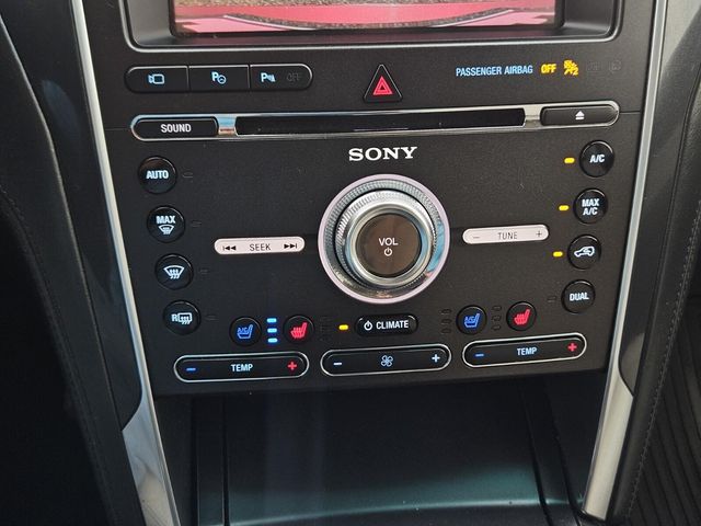 Equipment Group 600A, 4WD, 12 Speakers, 2nd Row Console, 3.16 Axle Ratio, 3rd row seats: split-bench, 4-Wheel Disc Brakes, ABS brakes, Adjustable pedals, Air Conditioning, All Weather Floor Mats, Alloy wheels, AM/FM radio: SiriusXM, Auto High-beam Headlights, Auto tilt-away steering wheel, Auto-dimming door mirrors, Auto-dimming Rear-View mirror, Automatic temperature control, Brake assist, Bumpers: body-color, CD player, Compass, Delay-off headlights, Driver door bin, Driver vanity mirror, Dual front impact airbags, Dual front side impact airbags, Electronic Stability Control, Emergency communication system: 911 Assist, Exterior Parking Camera Rear, Four wheel independent suspension, Front anti-roll bar, Front Bucket Seats, Front Center Armrest, Front dual zone A/C, Front fog lights, Front License Plate Bracket, Front reading lights, Fully automatic headlights, Garage door transmitter, Genuine wood dashboard insert, Genuine wood door panel insert, Heated 2nd Row Bucket Seats w/Power-Assist Fold, Heated door mirrors, Heated front seats, Heated rear seats, Heated steering wheel, Illuminated entry, Knee airbag, Lane Departure Warning System, Leather steering wheel, Low tire pressure warning, Memory seat, Navigation System, Nirvana Multi Contour Leather Cooled Bucket Seats, Occupant sensing airbag, Outside temperature display, Overhead airbag, Overhead console, Panic alarm, Passenger door bin, Passenger vanity mirror, Pedal memory, Power door mirrors, Power driver seat, Power Liftgate, Power moonroof, Power passenger seat, Power steering, Power windows, Premium audio system: Sony, Radio data system, Radio: Premium Sound from Sony, Rain sensing wipers, Rear air conditioning, Rear anti-roll bar, Rear reading lights, Rear seat center armrest, Rear window defroster, Rear window wiper, Remote keyless entry, Roof rack: rails only, Roof Rail Crossbars (Dealer Installed), Security system, Speed control, Speed-sensing steering, Speed-Sensitive Wipers, Split folding rear seat, Spoiler, Steering wheel memory, Steering wheel mounted audio controls, SYNC w/MyFord Touch, Tachometer, Telescoping steering wheel, Tilt steering wheel, Traction control, Trip computer, Turn signal indicator mirrors, Variably intermittent wipers, Ventilated front seats, and Wheels: 20" Bright Machined Face Aluminum.