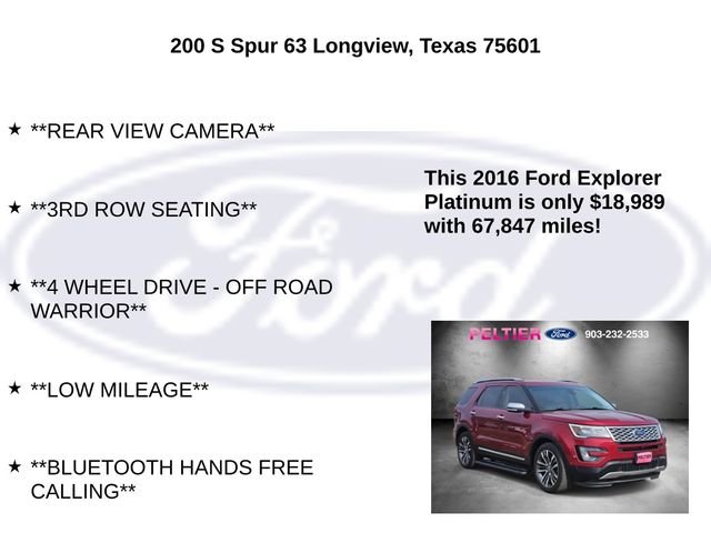 Ruby Red Metallic 2016 Ford 3.5L V6 4D Sport Utility Explorer Platinum 6-Speed Automatic with Select-Shift 4WD
