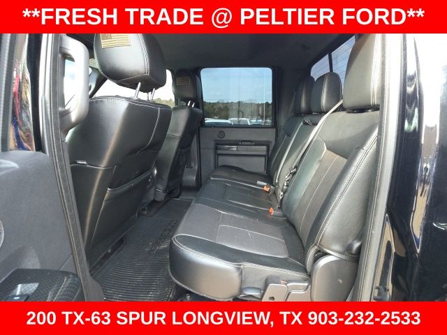 FX4 Off-Road Package (Colored Front & Rear Rancho Branded Shocks and Hill Descent Control), GVWR: 10,000 lb Payload Package, Order Code 608A, 4WD, Navigation System, 10 Speakers, 3.73 Axle Ratio, 4-Wheel Disc Brakes, ABS brakes, Adjustable pedals, Air Conditioning, Alloy wheels, AM/FM radio: SiriusXM, Auto-dimming Rear-View mirror, Automatic temperature control, Brake assist, Bumpers: chrome, CD player, Compass, Delay-off headlights, Driver door bin, Driver vanity mirror, Dual front impact airbags, Dual front side impact airbags, Electronic Stability Control, Exterior Parking Camera Rear, Extra Heavy-Duty 200-Amp Alternator, Front anti-roll bar, Front Bucket Seats, Front Center Armrest, Front dual zone A/C, Front fog lights, Front reading lights, Fully automatic headlights, Heated door mirrors, Illuminated entry, Leather steering wheel, Low tire pressure warning, Outside temperature display, Overhead airbag, Overhead console, Panic alarm, Passenger door bin, Passenger vanity mirror, Power door mirrors, Power driver seat, Power passenger seat, Power steering, Power windows, Premium audio system: Sony, Premium Leather Seating Surfaces 40/Console/40, Radio data system, Radio: Premium Sony Audio w/Single-CD/MP3, Rear Parking Sensors, Rear reading lights, Rear seat center armrest, Rear step bumper, Rear window defroster, Remote keyless entry, Security system, SiriusXM Satellite Radio, Speed control, Split folding rear seat, Steering wheel mounted audio controls, SYNC w/MyFord Touch & SYNC Services, Tachometer, Telescoping steering wheel, Tilt steering wheel, Traction control, Trip computer, Turn signal indicator mirrors, and Variably intermittent wipers.