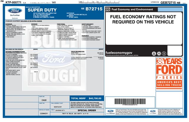 2016 Ford F-350SD XL Truck V8 EFI SOHC 16V Flex Fuel