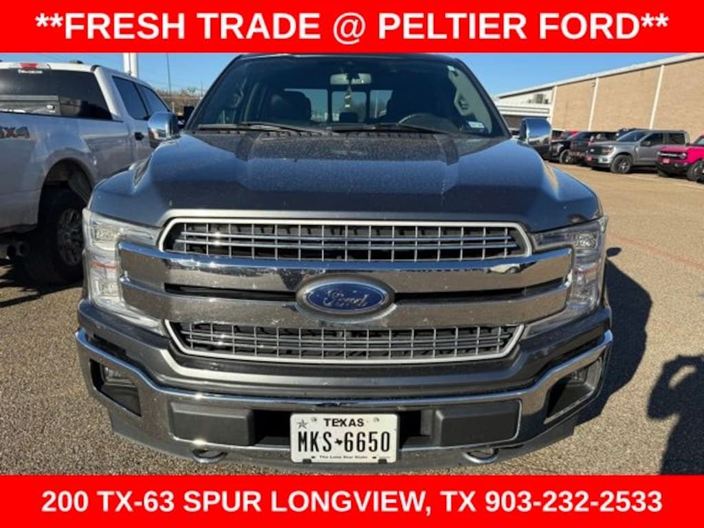 Equipment Group 502A Luxury (110V/400W Outlet, 2nd Row Heated Seats, Automatic High Beam w/Rain-Sensing Wipers, BLIS Blind Spot Information System, Heated Steering Wheel, Leather-Trimmed Bucket Seats, LED Sideview Mirror Spotlights, Power Tilt/Telescoping Steering Column w/Memory, Quad Beam LED Headlamps & LED Taillamps/Fog Lamps, Radio: B&O Play Premium Audio System, Remote Start System w/Remote Tailgate Release, Reverse Sensing System, SYNC Connect, Universal Garage Door Opener, Voice-Activated Touchscreen Navigation System, and Windshield Wiper De-Icer), FX4 Off-Road Package, Lariat Chrome Appearance Package (Chrome 2-Bar Grille w/4 Minor Bars, Chrome Angular Step Bars, Chrome Door & Tailgate Handles w/Body-Color Bezel, Chrome Skull Caps on Exterior Mirrors, Single-Tip Chrome Exhaust, and Wheels: 18" Chrome-Like PVD), Trailer Tow Package (Class IV Trailer Hitch Receiver, Higher-Capacity Radiator, Higher-Power Cooling Fans, Pro Trailer Backup Assist, and Upgraded Front Stabilizer Bar), 4WD, 18" Machined-Aluminum Wheels, 4-Wheel Disc Brakes, 7 Speakers, ABS brakes, Adjustable pedals, Air Conditioning, Alloy wheels, AM/FM radio: SiriusXM, AppLink/Apple CarPlay and Android Auto, Auto-dimming door mirrors, Auto-dimming Rear-View mirror, Automatic temperature control, Brake assist, Bumpers: chrome, CD player, Compass, Delay-off headlights, Driver door bin, Driver vanity mirror, Dual front impact airbags, Dual front side impact airbags, Electronic Stability Control, Emergency communication system: SYNC 3 911 Assist, Exterior Parking Camera Rear, Front anti-roll bar, Front Center Armrest w/Storage, Front dual zone A/C, Front fog lights, Front reading lights, Front wheel independent suspension, Fully automatic headlights, Heated door mirrors, Heated front seats, Illuminated entry, Integrated Trailer Brake Controller, Leather-Trimmed 40/20/40 Front Seat, Low tire pressure warning, Memory seat, Occupant sensing airbag, Outside temperature display, Overhead airbag, Overhead console, Panic alarm, Passenger door bin, Passenger vanity mirror, Pedal memory, Power door mirrors, Power driver seat, Power Glass Sideview Mirr w/Body-Color Skull Caps, Power passenger seat, Power steering, Power windows, Radio data system, Radio: Single-CD/SiriusXM w/7 Speakers, Rear reading lights, Rear seat center armrest, Rear step bumper, Rear window defroster, Remote keyless entry, Security system, Speed control, Speed-sensing steering, Split folding rear seat, Steering wheel mounted audio controls, SYNC 3, Tachometer, Tailgate Step w/Tailgate Lift Assist, Telescoping steering wheel, Tilt steering wheel, Traction control, Trip computer, Turn signal indicator mirrors, Twin Panel Moonroof, Variably intermittent wipers, Ventilated front seats, Voltmeter, and Wheels: 20" Chrome-Like PVD.