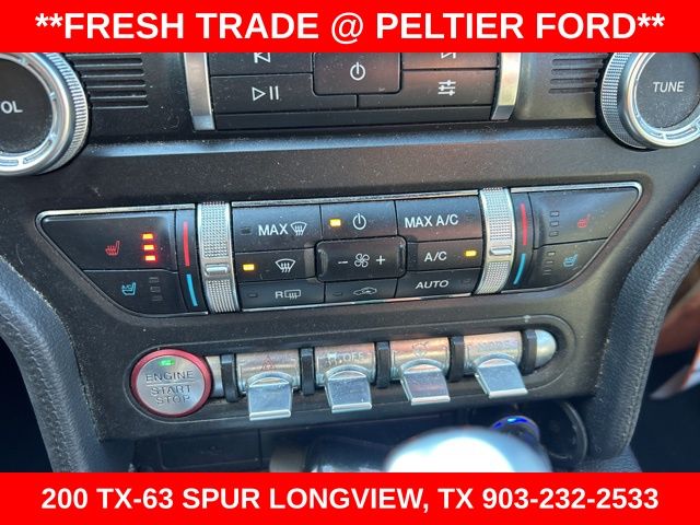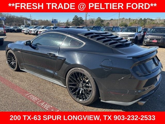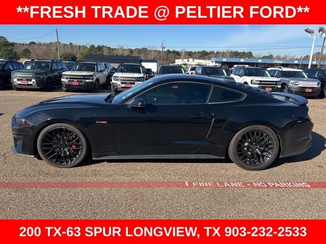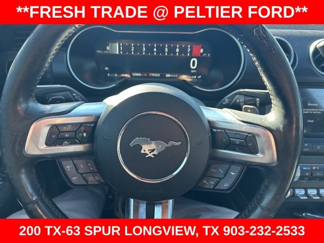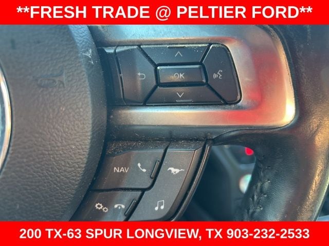 California Special Package (California Special Instrument Panel Applique Badge and Pedestal Rear Spoiler), Equipment Group 401A, Ford Safe & Smart Package (Lane-Keeping Alert and Rain-Sensing Windshield Wipers), 4-Wheel Disc Brakes, 9 Speakers, ABS brakes, Air Conditioning, Alloy wheels, AM/FM radio: SiriusXM, AM/FM Stereo, AppLink/Apple CarPlay and Android Auto, Auto-dimming Rear-View mirror, Automatic temperature control, Black GT, 5.0 & Pony Badges, Brake assist, Bumpers: body-color, Climate Controlled Heated/Cooled Front Seats, Compass, Delay-off headlights, Driver door bin, Driver vanity mirror, Dual front impact airbags, Dual front side impact airbags, Electronic Stability Control, Emergency communication system: 911 Assist, Exterior Parking Camera Rear, Four wheel independent suspension, Front anti-roll bar, Front Bucket Seats, Front Center Armrest, Front dual zone A/C, Front fog lights, Front reading lights, Fully automatic headlights, Garage door transmitter, Heated door mirrors, Heated front seats, Illuminated entry, Knee airbag, Leather Bucket Seats, Leather Shift Knob, Low tire pressure warning, Occupant sensing airbag, Outside temperature display, Overhead airbag, Overhead console, Panic alarm, Passenger door bin, Passenger vanity mirror, Power door mirrors, Power driver seat, Power passenger seat, Power steering, Power windows, Radio data system, Rear anti-roll bar, Rear window defroster, Remote keyless entry, Security system, Silver Tape Stripe, SiriusXM Radio, Speed control, Speed-sensing steering, Speed-Sensitive Wipers, Split folding rear seat, Spoiler, Steering wheel mounted audio controls, SYNC 3 Communications & Entertainment System, Tachometer, Telescoping steering wheel, Tilt steering wheel, Traction control, Trip computer, Turn signal indicator mirrors, Variably intermittent wipers, Ventilated front seats, Voice-Activated Touch-Screen Navigation System, Voltmeter, and Wheels: 18" x 8" Machined-Face Aluminum.