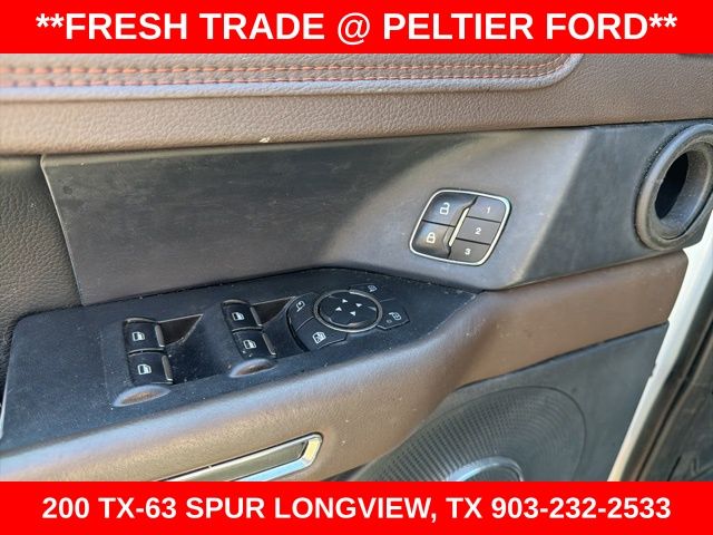 Cargo Package (Black Roof Rail Crossbars), Equipment Group 400A, Navigation System, 12 Speakers, 2nd Row Outboard Inflatable Rear Safety Belts, 3.15 Axle Ratio, 3rd row seats: split-bench, 4-Wheel Disc Brakes, ABS brakes, Adaptive suspension, Adjustable pedals, Air Conditioning, Alloy wheels, AM/FM radio: SiriusXM, Auto High-beam Headlights, Auto-dimming door mirrors, Auto-dimming Rear-View mirror, Automatic temperature control, Brake assist, Bumpers: body-color, Compass, Delay-off headlights, Driver door bin, Driver vanity mirror, Dual front impact airbags, Dual front side impact airbags, Electronic Stability Control, Emergency communication system: SYNC 3 911 Assist, Exterior Parking Camera Rear, Four wheel independent suspension, Front anti-roll bar, Front Bucket Seats, Front Center Armrest, Front dual zone A/C, Front fog lights, Front reading lights, Fully automatic headlights, Garage door transmitter, Genuine wood console insert, Genuine wood dashboard insert, Genuine wood door panel insert, Heated door mirrors, Heated front seats, Heated rear seats, Heated steering wheel, Heated/Cooled Del Rio Leather Fr Captain's Chairs, Illuminated entry, Leather steering wheel, Low tire pressure warning, Memory seat, Occupant sensing airbag, Outside temperature display, Overhead airbag, Overhead console, Panic alarm, Passenger door bin, Passenger vanity mirror, Pedal memory, Power door mirrors, Power driver seat, Power Liftgate, Power moonroof, Power passenger seat, Power steering, Power windows, Radio data system, Radio: B&O Sound System by Bang & Olufsen, Rain sensing wipers, Rear air conditioning, Rear anti-roll bar, Rear audio controls, Rear reading lights, Rear window defroster, Rear window wiper, Reclining 3rd row seat, Remote keyless entry, Roof rack: rails only, Security system, SiriusXM Satellite Radio, Speed control, Speed-sensing steering, Speed-Sensitive Wipers, Split folding rear seat, Steering wheel memory, Steering wheel mounted audio controls, SYNC 3 Communications & Entertainment System, Tachometer, Telescoping steering wheel, Tilt steering wheel, Traction control, Trip computer, Turn signal indicator mirrors, Variably intermittent wipers, Ventilated front seats, Voltmeter, and Wheels: 22" 6-Spoke Painted Machined-Face Aluminum.