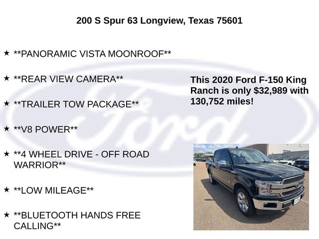 Whether you're looking for a capable off-road companion, a comfortable daily driver, or a versatile work truck, this 2020 Ford F-150 King Ranch is sure to impress. With its powerful engine, premium features, and rugged design, it's the perfect blend of capability and luxury.
