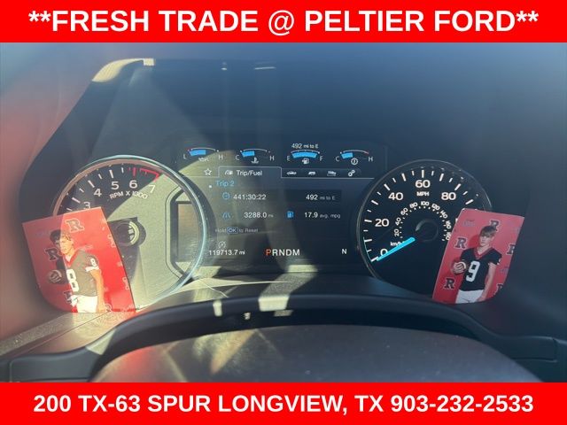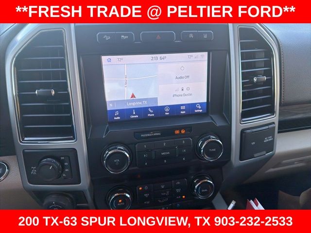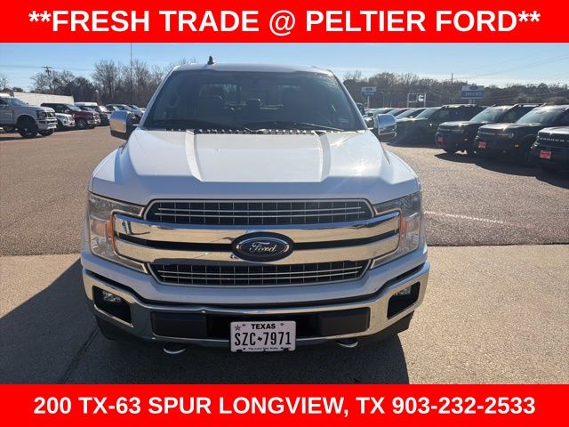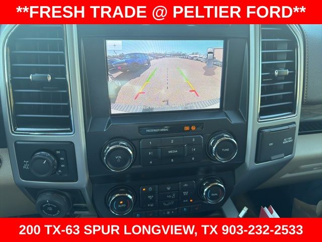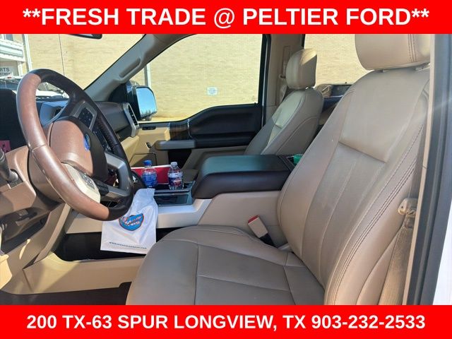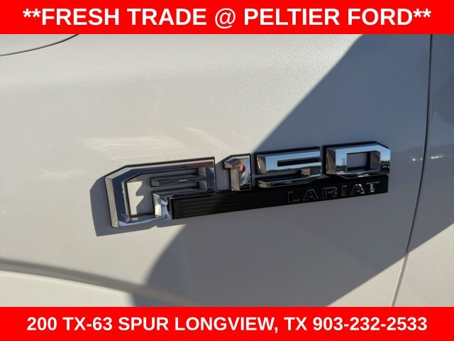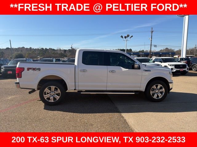 Equipment Group 501A Mid (110V/400W Outlet, Power Glass Sideview Mirr w/Body-Color Skull Caps, Remote Start System w/Remote Tailgate Release, and Reverse Sensing System), FX4 Off-Road Package (4x4 FX4 Off-Road Bodyside Decal, Hill Descent Control, Off-Road Tuned Front Shock Absorbers, and Tray Style Floor Liner), Lariat Bed Utility Package, Lariat Chrome Appearance Package (Chrome 2-Bar Grille w/4 Minor Bars, Chrome Angular Step Bars, Chrome Door & Tailgate Handles w/Body-Color Bezel, Chrome Skull Caps on Exterior Mirrors, Single-Tip Chrome Exhaust, and Wheels: 18" Chrome-Like PVD), Max Trailer Tow Package (Class IV Trailer Hitch Receiver, Electronic Locking w/3.55 Axle Ratio, Engine Oil Cooler, Extended Range 36 Gallon Fuel Tank, Integrated Trailer Brake Controller, Pro Trailer Backup Assist, and Upgraded Front Stabilizer Bar), 4WD, 18" Machined-Aluminum Wheels, 4-Wheel Disc Brakes, 7 Speakers, ABS brakes, Adjustable pedals, Air Conditioning, Alloy wheels, AM/FM radio: SiriusXM, Auto High-beam Headlights, Auto-dimming door mirrors, Auto-dimming Rear-View mirror, Automatic temperature control, Brake assist, Bumpers: chrome, Compass, Delay-off headlights, Driver door bin, Driver vanity mirror, Dual front impact airbags, Dual front side impact airbags, Electronic Stability Control, Emergency communication system: SYNC 3 911 Assist, Exterior Parking Camera Rear, Front anti-roll bar, Front Center Armrest w/Storage, Front dual zone A/C, Front fog lights, Front reading lights, Front wheel independent suspension, Fully automatic headlights, Heated door mirrors, Heated front seats, Illuminated entry, Leather-Trimmed 40/20/40 Front Seat, Low tire pressure warning, Memory seat, Occupant sensing airbag, Outside temperature display, Overhead airbag, Overhead console, Panic alarm, Passenger door bin, Passenger vanity mirror, Pedal memory, Power door mirrors, Power driver seat, Power passenger seat, Power steering, Power windows, Radio data system, Radio: AM/FM Stereo w/6 Speakers, Rear reading lights, Rear seat center armrest, Rear step bumper, Rear window defroster, Remote keyless entry, Security system, SiriusXM Radio, Speed control, Speed-sensing steering, Split folding rear seat, Steering wheel mounted audio controls, SYNC 3, Tachometer, Tailgate Step w/Tailgate Lift Assist, Telescoping steering wheel, Tilt steering wheel, Traction control, Trip computer, Turn signal indicator mirrors, Twin Panel Moonroof, Variably intermittent wipers, Ventilated front seats, Voice-Activated Touchscreen Navigation, Voltmeter, and Wheels: 20" Chrome-Like PVD.