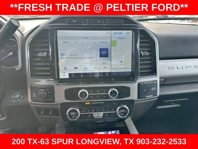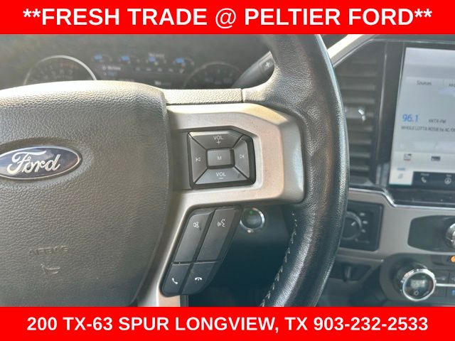 Chrome Package (6" Angular Bright Polished Step Bars, Body-Color Door Handles w/Chrome Insert, Chrome Exhaust Tip, PowerScope Trailer Tow Mirrors w/Heat, Unique Chrome Mirror Caps, and Wheels: 18" Chrome PVD Aluminum), FX4 Off-Road Package (Hill Descent Control, Off-Road Specifically Tuned Shock Absorbers, and Unique FX4 Off-Road Box Decal), GVWR: 10,000 lb Payload Package, Lariat Ultimate Package (Ambient Lighting - Fixed Color, Easy Entry®/Exit Memory Driver's Seat Feature, Intelligent Access w/Push-Button Start, LED Box Lighting, Memory Power-Adjustable Pedals, Power Heated/Ventilated Driver Seat w/Memory, Power Heated/Ventilated Passenger Seat, Power Telescoping/Tilt Steering Wheel/Column, PowerScope Trailer Tow Mirrors w/Memory, Remote Start System, Remote Tailgate Release, and Tailgate Step & Handle), Order Code 608A, 4WD, Navigation System, 10 Speakers, 3.73 Axle Ratio, 4-Wheel Disc Brakes, 6" Angular Bright Polished Step Bar, ABS brakes, Adjustable pedals, Air Conditioning, Alloy wheels, AM/FM radio: SiriusXM with 360L, Auto High-beam Headlights, Auto-dimming Rear-View mirror, Automatic temperature control, Brake assist, Bumpers: chrome, Compass, Delay-off headlights, Driver door bin, Driver vanity mirror, Dual front impact airbags, Dual front side impact airbags, Electronic Stability Control, Electronic-Locking w/3.55 Axle Ratio, Electronic-Locking w/3.55 Axle Ratio w/99T, Emergency communication system: SYNC 4 911 Assist, Exterior Parking Camera Rear, Flow-Through Console, Front anti-roll bar, Front Bucket Seats, Front Center Armrest, Front dual zone A/C, Front fog lights, Front Leather Seating Surfaces 40/Console/40, Front reading lights, Fully automatic headlights, Heated door mirrors, Illuminated entry, Leather steering wheel, Low tire pressure warning, Outside temperature display, Overhead airbag, Overhead console, Panic alarm, Passenger door bin, Passenger vanity mirror, Power door mirrors, Power driver seat, Power passenger seat, Power steering, Power windows, Radio data system, Radio: B&O Sound System by Bang & Olufsen, Rear Parking Sensors, Rear reading lights, Rear seat center armrest, Rear step bumper, Rear window defroster, Remote keyless entry, Security system, SiriusXM Radio w/360L, Speed control, Split folding rear seat, Steering wheel mounted audio controls, SYNC 4 w/Enhanced Voice Recognition, Tachometer, T