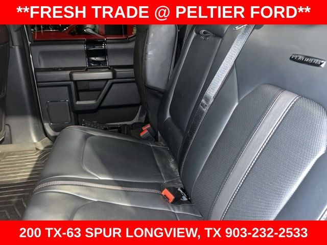**CLEAN CARFAX**, **CARFAX 1 OWNER**, **NON SMOKER VEHICLE**, **FACTORY NAVIGATION**, **LEATHER SEATS**, **SPRAY ON BEDLINER**, **HEATED FRONT SEATS**, **HEATED/COOLED FRONT SEATS**, **REAR VIEW CAMERA**, **TRAILER TOW PACKAGE**, **AFTERMARKET WHEELS**, **V8 POWER**, **4 WHEEL DRIVE - OFF ROAD WARRIOR**, **POWER STROKE DIESEL**, **LOW MILEAGE**, **BLUETOOTH HANDS FREE CALLING**, **POWER DEPLOYING RUNNING BOARDS**, **POWER DRIVERS SEAT**, **SIRIUS XM SATELLITE RADIO**, **INTEGRATED TRAILER BRAKE CONTROLLER**, **36 GALLON EXT RANGE FUEL TANK**, **FX4 OFF ROAD**, **5TH WHEEL PREP PACKAGE**, **GOOSENECK HITCH**, **703A EQUIPMENT GROUP**, **B&O PLAY PREMIUM AUDIO SYSTEM**, **POWERSCOPE TRAILER TOW MIRROR**, **POWER LIFTGATE**, **REMOTE START SYSTEM**, **HEATED STEERING WHEEL**, **PLATINUM PACKAGE**, **20" POLISHED WHEELS**, **RAIN-SENSING WIPERS**, **PUSH BUTTON START**, **POWER EQUIPMENT GROUP**, **POWER SLIDING REAR WINDOW**, **REVERSE SENSING SYSTEM**, 4WD, 5th Wheel/Gooseneck Hitch Prep Package, FX4 Off-Road Package, GVWR: 10,000 lb Payload Package, High Capacity Trailer Tow Package, Hill Descent Control, Navigation system: Connected Navigation, Off-Road Specifically Tuned Shock Absorbers, Order Code 703A, Unique FX4 Off-Road Box Decal.
