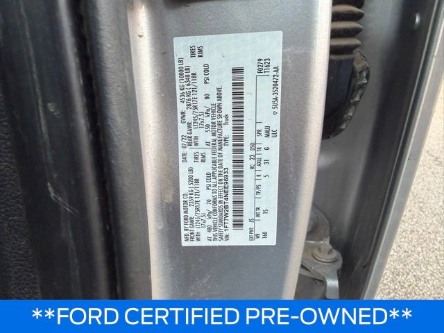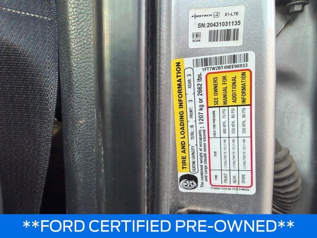 GVWR: 10,000 lb Payload Package, Order Code 600A, Ford Blue Advantage: Blue Certified Certified, 4WD, 17" Argent Painted Steel Wheels, 3.31 Axle Ratio, 3.73 Axle Ratio, 4 Speakers, 4-Wheel Disc Brakes, ABS brakes, Air Conditioning, AM/FM radio, AM/FM Stereo w/MP3 Player, Brake assist, Compass, Delay-off headlights, Dual front impact airbags, Dual front side impact airbags, Electronic Stability Control, Emergency communication system: 911 Assist, Exterior Parking Camera Rear, Front anti-roll bar, Front Center Armrest w/Storage, Front reading lights, Fully automatic headlights, HD Vinyl 40/20/40 Split Bench Seat, Low tire pressure warning, Outside temperature display, Overhead airbag, Overhead console, Passenger vanity mirror, Power steering, Rear reading lights, Rear step bumper, Split folding rear seat, Steering wheel mounted audio controls, SYNC Communications & Entertainment System, Tachometer, Telescoping steering wheel, Tilt steering wheel, Traction control, Trip computer, and Variably intermittent wipers.