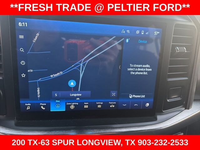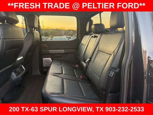 Bed Utility Package (BoxLink, LED Box Lighting, Power Tailgate, and Tailgate Step w/Tailgate Work Surface), Equipment Group 502A High (2nd Row Heated Seats, LED Projector w/Dynamic Bending Headlamps, Power Tilt/Telescoping Steering Column w/Memory, Rain-Sensing Wipers, Wheels: 20" Chrome-Like PVD, and Wireless Charging Pad), Ford Co-Pilot360 Assist 2.0 (Connected Built-In Navigation and Intersection Assist), FX4 Off-Road Package (4x4 FX4 Off-Road Bodyside Decal, Hill Descent Control, Monotube Rear Shocks, Off-Road Tuned Front Shock Absorbers, and Rock Crawl Mode), Trailer Tow Package (Class IV Trailer Hitch Receiver, Integrated Trailer Brake Controller, and Pro Trailer Backup Assist & Pro Trailer Hitch Assist), 4WD, Navigation System, Navigation system: Connected Navigation, 360 Degree Camera, 4-Wheel Disc Brakes, 8 Speakers, ABS brakes, Adjustable pedals, Air Conditioning, Alloy wheels, AM/FM radio: SiriusXM with 360L, Auto High-beam Headlights, Auto Start-Stop Removal (DISC), Auto-dimming door mirrors, Auto-dimming Rear-View mirror, Automatic temperature control, Brake assist, Bumpers: chrome, Chrome wheels, Compass, Delay-off headlights, Driver door bin, Driver vanity mirror, Dual front impact airbags, Dual front side impact airbags, Electronic Locking w/3.31 Axle Ratio, Electronic Stability Control, Emergency communication system: SYNC 4 911 Assist, Extended Range 36 Gallon Fuel Tank, Exterior Parking Camera Rear, Front anti-roll bar, Front Bucket Seats, Front Center Armrest, Front dual zone A/C, Front fog lights, Front reading lights, Front wheel independent suspension, Fully automatic headlights, Garage door transmitter, Heated door mirrors, Heated front seats, Heated steering wheel, Illuminated entry, Inclination/Intrusion Sensor Removal, LED Sideview Mirror Spotlights, Low tire pressure warning, Memory seat, Occupant sensing airbag, Outside temperature display, Overhead airbag, Overhead console, Panic alarm, Passenger door bin, Passenger vanity mirror, Pedal memory, Power door mirrors, Power driver seat, Power passenger seat, Power steering, Power windows, Power-Deployable Running Boards, Radio data system, Radio: B&O Sound System by Bang & Olufsen, Radio: B&O Unleashed Sound System by Bang & Olufsen, Rear reading lights, Rear seat center armrest, Rear step bumper, Rear window defroster, Remote keyless entry, Security system, Speed control, Speed-sensing steering, Split folding rear seat, Steering Wheel Heat Removal (DISC), Steering wheel mounted audio controls, SYNC 4 w/Enhanced Voice Recognition, Tachometer, Telescoping steering wheel, Tilt steering wheel, Traction control, Tray Style Floor Liner (47W), Trip computer, Turn signal indicator mirrors, Variably intermittent wipers, Ventilated front seats, Voltmeter, Wheel Well Liner, and Wheels: 18" Chrome-Like PVD.