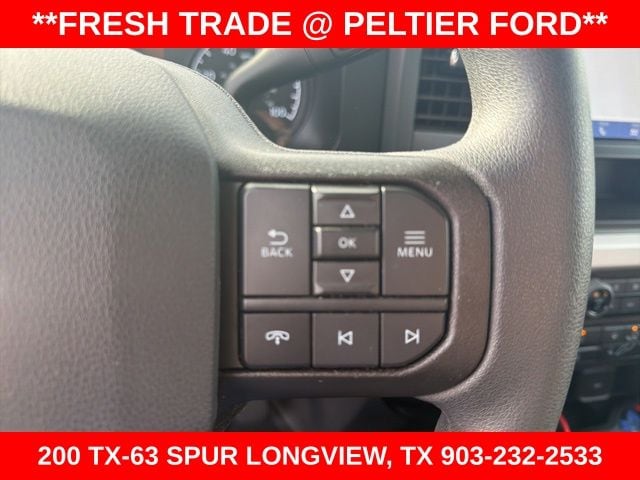 GVWR: 10,000 lb Payload Package, Order Code 600A, XL Chrome Package (BoxLink, Bright Chrome Hub Covers & Center Ornaments, Chrome Front Bumper, Chrome Rear Step Bumper, and Halogen Fog Lamps), XL Off-Road Package (Rear Electronic Locking Differential), 4WD, 17" Argent Painted Steel Wheels, 190 Amp Alternator, 3.73 Axle Ratio, 4 Speakers, 4-Wheel Disc Brakes, ABS brakes, Air Conditioning, AM/FM radio, AM/FM Stereo w/MP3 Player, Brake assist, Compass, Delay-off headlights, Dual 68 AH/65 AGM Batteries, Dual front impact airbags, Dual front side impact airbags, Electronic Stability Control, Emergency communication system: SYNC 4 911 Assist, Exterior Parking Camera Rear, Front anti-roll bar, Front Center Armrest w/Storage, Front reading lights, Fully automatic headlights, HD Vinyl 40/20/40 Split Bench Seat, Heated door mirrors, Illuminated entry, Interior Work Surface, Low tire pressure warning, Outside temperature display, Overhead airbag, Overhead console, Panic alarm, Passenger vanity mirror, Power door mirrors, Power steering, Power windows, Rear reading lights, Rear step bumper, Remote keyless entry, Speed control, Split folding rear seat, Steering wheel mounted audio controls, SYNC 4, Tachometer, Telescoping steering wheel, Tilt steering wheel, Traction control, Trip computer, Turn signal indicator mirrors, Upfitter Switches (6), and Variably intermittent wipers.