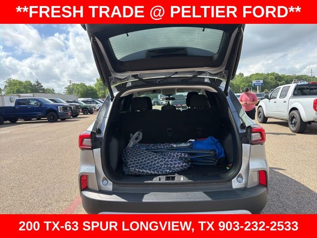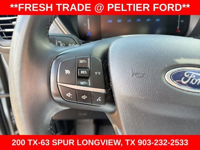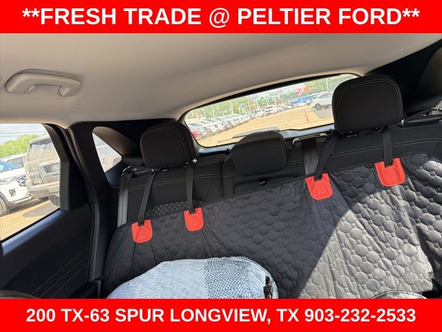 Equipment Group 200A, 3.81 Axle Ratio, 4-Wheel Disc Brakes, 6 Speakers, ABS brakes, Air Conditioning, Alloy wheels, AM/FM radio: SiriusXM, AM/FM Stereo, Auto High-beam Headlights, Automatic temperature control, Brake assist, Bumpers: body-color, Compass, Delay-off headlights, Driver door bin, Driver vanity mirror, Dual front impact airbags, Dual front side impact airbags, Electronic Stability Control, Emergency communication system: SYNC 4 911 Assist, Exterior Parking Camera Rear, FordPass Connect, Four wheel independent suspension, Front anti-roll bar, Front Bucket Seats, Front Center Armrest, Front dual zone A/C, Front License Plate Bracket, Front reading lights, Fully automatic headlights, Illuminated entry, Knee airbag, Low tire pressure warning, Occupant sensing airbag, Outside temperature display, Overhead airbag, Overhead console, Panic alarm, Passenger door bin, Passenger vanity mirror, Power door mirrors, Power driver seat, Power Liftgate, Power steering, Power windows, Radio data system, Rear anti-roll bar, Rear reading lights, Rear seat center armrest, Rear window defroster, Rear window wiper, Remote keyless entry, Speed control, Speed-sensing steering, Speed-Sensitive Wipers, Split folding rear seat, Spoiler, Steering wheel mounted audio controls, SYNC 4, Tachometer, Telescoping steering wheel, Tilt steering wheel, Traction control, Trip computer, Unique Cloth Front Bucket Seats, Variably intermittent wipers, and Wheels: 17" Shadow Silver-Painted Aluminum.