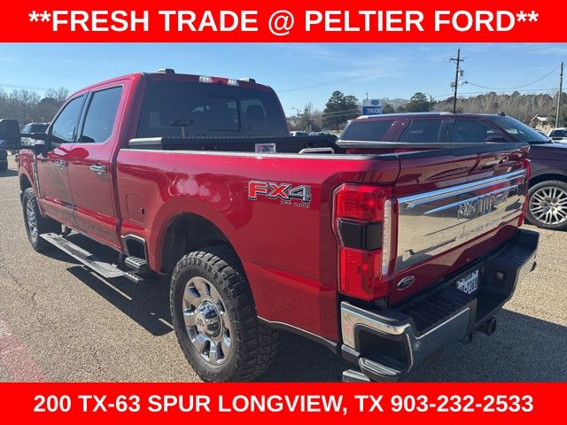 Chrome Package (Chrome Door Handles, Chrome Exhaust Tip, Unique Chrome Mirror Caps, and Wheels: 20" Chrome PVD Aluminum), F-250 >10K GVWR Package, FX4 Off-Road Package (Hill Descent Control, Off-Road Specifically Tuned Shock Absorbers, and Unique FX4 Off-Road Box Decal), 4WD, Navigation System, 4-Wheel Disc Brakes, ABS brakes, Adjustable pedals, Air Conditioning, Alloy wheels, AM/FM radio: SiriusXM with 360L, Auto High-beam Headlights, Auto tilt-away steering wheel, Auto-dimming Rear-View mirror, Automatic temperature control, Brake assist, Compass, Delay-off headlights, Driver door bin, Driver vanity mirror, Dual front impact airbags, Dual front side impact airbags, Electronic Stability Control, Electronic-Locking w/3.73 Axle Ratio, Emergency communication system: SYNC 4 911 Assist, Exterior Parking Camera Rear, Flow-Through Console, Front & Rear Wheel Well Liners (Pre-Installed), Front anti-roll bar, Front Bucket Seats, Front Center Armrest, Front dual zone A/C, Front fog lights, Front License Plate Bracket, Front reading lights, Fully automatic headlights, Garage door transmitter, Heated door mirrors, Heated front seats, Heated rear seats, Heated steering wheel, Illuminated entry, Leather steering wheel, Low tire pressure warning, Max Recline Seats, Memory seat, Navigation system: Connected Navigation (includes complimentary 1-year trial), Outside temperature display, Overhead airbag, Overhead console, Panic alarm, Passenger door bin, Passenger vanity mirror, Pedal memory, Power door mirrors, Power driver seat, Power passenger seat, Power steering, Power windows, Rain sensing wipers, Rear reading lights, Rear seat center armrest, Rear step bumper, Rear window defroster, Remote keyless entry, Retractable Bed Side-Step (Pre-Installed), Retractable Rear Corner Bed Step (Pre-Installed), Security system, SiriusXM Radio w/360L, Speed control, Split folding rear seat, Steering wheel memory, Steering wheel mounted audio controls, SYNC 4 w/Enhanced Voice Recognition, Tachometer, Telescoping steering wheel, Tilt steering wheel, Traction control, Trip computer, Turn signal indicator mirrors, Twin Panel Power Moonroof, Variably intermittent wipers, Vehicle Safe by Console Vault (Pre-Installed), and Ventilated front seats.