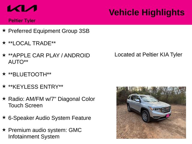 Recent Arrival! **LOCAL TRADE**, **APPLE CAR PLAY / ANDROID AUTO**, **BLUETOOTH**, **KEYLESS ENTRY**, 6 Speakers, 6-Speaker Audio System Feature, Air Conditioning, AM/FM radio: SiriusXM, Apple CarPlay/Android Auto, Automatic temperature control, Compass, Driver door bin, Driver vanity mirror, Front dual zone A/C, Power driver seat, Power steering, Power windows, Preferred Equipment Group 3SB, Premium audio system: GMC Infotainment System, Radio data system, Radio: AM/FM w/7" Diagonal Color Touch Screen, Rear air conditioning, Remote keyless entry, Steering wheel mounted audio controls.