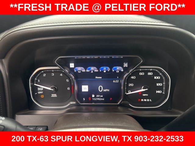 Denali Ultimate Package (GMC MultiPro Power Steps, Power Sunroof, and Trailer Tire Pressure Monitor System), Driver Alert Package I (Lane Change Alert w/Side Blind Zone Alert, Rear Cross Traffic Alert, and Ultrasonic Front & Rear Park Assist), Driver Alert Package II (Following Distance Indicator, Forward Collision Alert, Front Pedestrian Braking, IntelliBeam Automatic High Beam On/Off, Lane Keep Assist w/Lane Departure Warning, and Low Speed Forward Automatic Braking), Preferred Equipment Group 5SA (12-Volt Rear Auxiliary Power Outlet, 120-Volt Bed Mounted Power Outlet, 120-Volt Instrument Panel Power Outlet, 170 Amp Alternator, 2 USB Ports, 2 USB Ports (1st Row), Auxiliary External Transmission Oil Cooler, Chrome Assist Steps, Chrome Recovery Hooks, Color-Keyed Carpeting Floor Covering, Compass, Deep-Tinted Glass, Electric Rear-Window Defogger, Electrical Lock Control Steering Column, Floor Mounted Console, GMC 4G LTE, GMC Connected Access, HD Radio, HD Rear Vision Camera, Heated 2nd Row Outboard Seats, Heated Driver & Front Passenger Seating, Heavy-Duty Rear Locking Differential, High-Capacity Air Filter, Hill Descent Control, Hitch Guidance, Hitch Guidance w/Hitch View, In-Vehicle Trailering App, Integrated Trailer Brake Controller, Keyless Open & Start, LED Cargo Area Lighting, Manual Tilt-Wheel & Telescoping Steering Column, OnStar & GMC Connected Services Capable, Power Door Locks, Power Front Passenger Windows w/Express Up/Down, Power Front Windows w/Driver Express Up/Down, Power Rear Windows w/Express Down, Power Sliding Rear Window w/Rear Defogger, Rear Dual USB Charging-Only Ports, Rear Wheelhouse Liners, Remote Vehicle Starter System, Safety Alert Seat, Signature Denali Grille, Spray-On Pickup Bed Liner w/Denali Logo, Steering Wheel Audio Controls, Theft Deterrent System (Unauthorized Entry), Universal Home Remote, Ventilated Driver & Front Passenger Seats, and Wireless Charging), Technology Package (HD Surround Vision, Multi-Color 15" Diagonal Head-Up Display, and Rear Camera Mirror), Trailering Package, 10-Speed Automatic, 4WD, Dark Walnut/Dark Ash Grey Leather, 10-Way Power Driver Seat Adjuster w/Lumbar, 10-Way Power Passenger Seat Adjuster w/Lumbar, 3.23 Rear Axle Ratio, 4-Wheel Disc Brakes, 7 Speakers, ABS brakes, Adaptive Ride Control Suspension, Adaptive suspension, Air Conditioning, Alloy wheels, AM/FM radio: SiriusXM, Apple CarPlay/Android Auto, Auto-dimming door mirrors, Auto-dimming Rear-View mirror, Automatic temperature control, Brake assist, Bumpers: body-color, Delay-off headlights, Driver door bin, Driver Memory, Driver vanity mirror, Dual front impact airbags, Dual front side impact airbags, Electronic Stability Control, Forge Perforated Leather-Appointed Seat Trim, Front anti-roll bar, Front Bucket Seats, Front Center Armrest, Front dual zone A/C, Front fog lights, Front License Plate Kit, Front reading lights, Front wheel independent suspension, Fully automatic headlights, Garage door transmitter, Genuine wood console insert, Genuine wood door panel insert, Heated door mirrors, Heated front seats, Heated rear seats, Heated steering wheel, Illuminated entry, Low tire pressure warning, Memory seat, Navigation System, Occupant sensing airbag, Outside temperature display, Overhead airbag, Overhead console, Panic alarm, Passenger door bin, Passenger vanity mirror, Power door mirrors, Power driver seat, Power passenger seat, Power steering, Power windows, Premium audio system: GMC Infotainment S