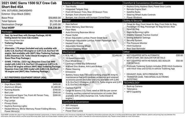 Odometer is 11255 miles below market average! 2021 GMC Sierra 1500 SLT EcoTec3 6.2L V8 4WD 10-Speed Automatic Onyx Black