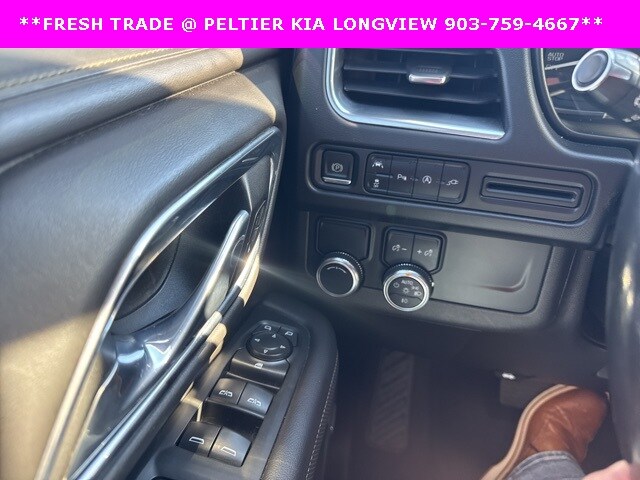 License Plate Front Mounting Package, Preferred Equipment Group 4SA (12-Way Power Seat Adjusters, 2 Presets For Power Driver Seat, Bose 9-Speaker Stereo Audio System Feature, Bright Chrome Bodyside Moldings, Bright Front & Rear Door Sill Plates, Chrome Door Handles w/Body-Color Strip, Hands-Free Power Programmable Rear Liftgate, Heated & Ventilated Driver & Front Passenger Seats, Heated Driver & Front Passenger Seats, Inside Rear-View Auto-Dimming Mirror, Safety Alert Seat, and Universal Home Remote), 3.23 Rear Axle Ratio, 3rd row seats: split-bench, 4-Wheel Disc Brakes, 9 Speakers, ABS brakes, Air Conditioning, Alloy wheels, AM/FM radio: SiriusXM with 360L, Apple CarPlay/Android Auto, Auto High-beam Headlights, Auto-dimming Rear-View mirror, Automatic Emergency Braking, Automatic temperature control, Bodyside moldings, Brake assist, Bumpers: body-color, Compass, Delay-off headlights, Driver door bin, Driver vanity mirror, Dual front impact airbags, Dual front side impact airbags, Electronic Stability Control, Emergency communication system: OnStar and GMC connected services capable, Following Distance Indicator, Forward Collision Alert, Four wheel independent suspension, Front anti-roll bar, Front Bucket Seats, Front Center Armrest, Front dual zone A/C, Front fog lights, Front Pedestrian Braking, Front reading lights, Fully automatic headlights, Garage door transmitter, HD Radio, Heated door mirrors, Heated front seats, Illuminated entry, IntelliBeam Automatic High Beam On/Off, Lane Change Alert w/Side Blind Zone Alert, Lane Keep Assist w/Lane Departure Warning, Leather steering wheel, Low tire pressure warning, Memory seat, Occupant sensing airbag, Outside temperature display, Overhead airbag, Overhead console, Panic alarm, Passenger door bin, Passenger vanity mirror, Perforated Leather Seating Surfaces, Power door mirrors, Power driver seat, Power Liftgate, Power passenger seat, Power steering, Power windows, Premium Smooth Ride Suspension, Radio: AM/FM/SiriusXM, Rain sensing wipers, Rear air conditioning, Rear anti-roll bar, Rear Cross Traffic Alert, Rear reading lights, Rear seat center armrest, Rear window defroster, Rear window wiper, Remote keyless entry, Roof rack: rails only, Security system, SiriusXM w/360L, Speed control, Speed-sensing steering, Split folding rear seat, Spoiler, Steering wheel mounted audio controls, Tachometer, Telescoping steering wheel, Tilt steering wheel, Traction control, Trip computer, Variably intermittent wipers, Ventilated front seats, Voltmeter, and Wheels: 20" x 9" 6-Spoke Polished Aluminum.