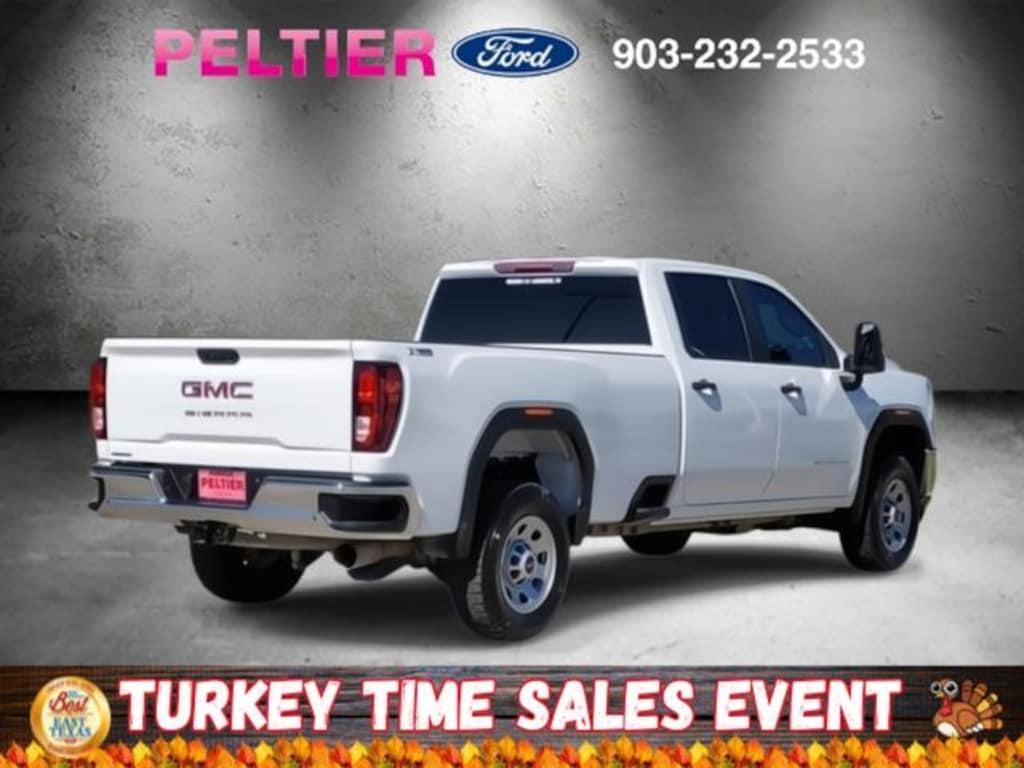Convenience Package (Deep-Tinted Glass, Electric Rear-Window Defogger, EZ Lift Power Lock & Release Tailgate, LED Cargo Area Lighting, Outside Power-Adjustable Black Mirrors, Remote Keyless Entry, and Steering Wheel-Mounted Cruise Control), Gooseneck/5th Wheel Package (Integrated Trailer Brake Controller and Spray-On Pickup Bed Liner), Gooseneck/5th Wheel Prep Package, Heavy Duty Front Spring/Camper Package, Preferred Equipment Group 1SA (2-Speed Electronic Shift Transfer Case, Chrome Surround Grille w/Black Mesh, Power Rear Windows w/Express Down, and Solar Absorbing Tinted Glass), Suspension Package, 10-Speed Automatic, 4WD, Black Cloth, 220 Amp Alternator, 3 Years of OnStar & Connected Services Plan, 4-Way Manual Driver Seat Adjuster, 4-Way Manual Passenger Seat Adjuster, 4-Wheel Disc Brakes, 6 Speakers, 6-Speaker Audio System Feature, ABS brakes, Air Conditioning, AM/FM radio, Apple CarPlay/Android Auto, Black Assist Step (LPO), Brake assist, Bumpers: chrome, Delay-off headlights, Driver door bin, Dual front impact airbags, Dual front side impact airbags, Electronic Stability Control, Engine Block Heater, Exhaust Brake, Front 40/20/40 Split-Bench Seats, Front anti-roll bar, Front Center Armrest w/Storage, Front License Plate Kit, Front reading lights, Front wheel independent suspension, Fully automatic headlights, Heavy-Duty 80 Amp Battery, Low tire pressure warning, Occupant sensing airbag, OnStar & GMC Connected Services Capable, Outside temperature display, Overhead airbag, Overhead console, Passenger door bin, Passenger vanity mirror, Pickup Bed, Power steering, Power windows, Premium audio system: GMC Infotainment System, Radio: AM/FM w/GMC Infotainment System, Rear reading lights, Rear step bumper, SiriusXM Radio, Split folding rear seat, Tachometer, Tilt steering wheel, Traction control, Trip computer, Variably intermittent wipers, Vinyl Seat Trim, Voltmeter, Wi-Fi Hotspot Capable, and Winter Grille Cover.