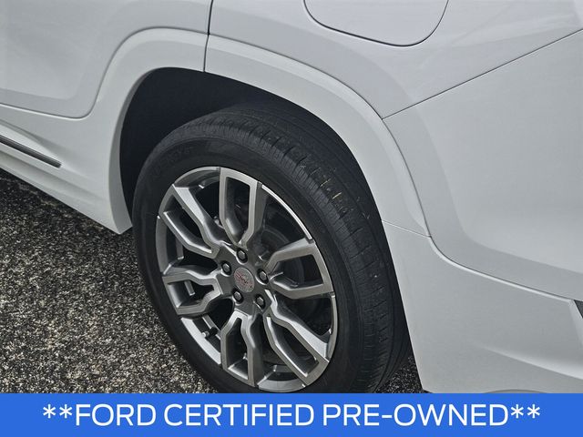 Comfort Package (Heated Rear Outboard Seating Positions, Ventilated Driver Seat, and Ventilated Front Passenger Seat), Denali Premium Package, Interior Protection Package (LPO) (All-Weather Cargo Mat (LPO) and All-Weather Floor Mats), License Plate Front Mounting Package, Preferred Equipment Group 5SA, Tech Package (Adaptive Cruise Control, Automatic Parking Assist, and HD Surround Vision), Ford Blue Advantage: Blue Certified Certified, AWD, Navigation system: GMC Connected Navigation, 2 USB Data Ports, 2 USB Data Ports w/SD Card Reader, 3.47 Final Drive Axle Ratio, 4-Wheel Disc Brakes, 6-Way Power Front Passenger Seat, 7 Speakers, 8-Way Power Driver Seat Adjuster, ABS brakes, Air Conditioning, Alloy wheels, AM/FM radio: SiriusXM, Auto High-beam Headlights, Auto-dimming Rear-View mirror, Automatic temperature control, Bluetooth® For Phone, Brake assist, Bumpers: body-color, Compass, Delay-off headlights, Driver & Front Passenger Heated Seats, Driver door bin, Driver vanity mirror, Dual front impact airbags, Dual front side impact airbags, Electronic Stability Control, Emergency communication system: OnStar and GMC connected services capable, Four wheel independent suspension, Front anti-roll bar, Front Bucket Seats, Front Center Armrest, Front dual zone A/C, Front fog lights, Front Passenger 2-Way Power Lumbar, Front reading lights, Fully automatic headlights, Garage door transmitter, Heads-Up Display, Heated door mirrors, Heated front seats, Heated steering wheel, Illuminated entry, Low tire pressure warning, Memory seat, Occupant sensing airbag, Outside temperature display, Overhead airbag, Overhead console, Panic alarm, Passenger door bin, Passenger vanity mirror, Perforated Leather-Appointed Seat Trim, Power door mirrors, Power Driver Lumbar Control, Power driver seat, Power Liftgate, Power passenger seat, Power steering, Power windows, Premium 7-Speaker Bose Sound System w/Amplifier, Radio data system, Radio: GMC Infotainment Audio System w/Navigation, Rear anti-roll bar, Rear seat center armrest, Rear window defroster, Rear window wiper, Remote keyless entry, Roof rack: rails only, Security system, SiriusXM, Skyscape Power Sunroof w/Power Sunscreen, Speed control, Speed-sensing steering, Split folding rear seat, Spoiler, Steering wheel mounted audio controls, Tachometer, Telescoping steering wheel, Tilt steering wheel, Traction control, Trip computer, Turn signal indicator mirrors, Variably intermittent wipers, Wheels: 19" x 7.5" Bright Machined Aluminum, and Wireless Apple CarPlay/Wireless Android Auto.
